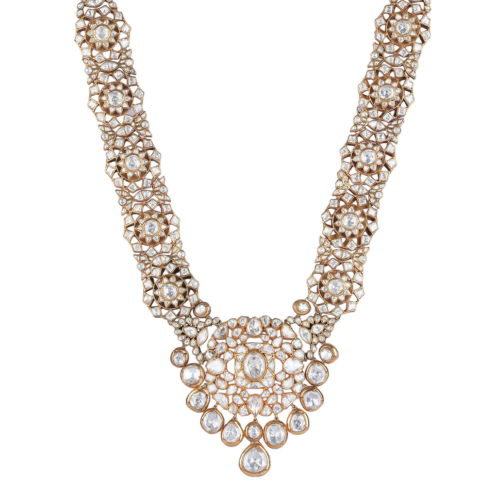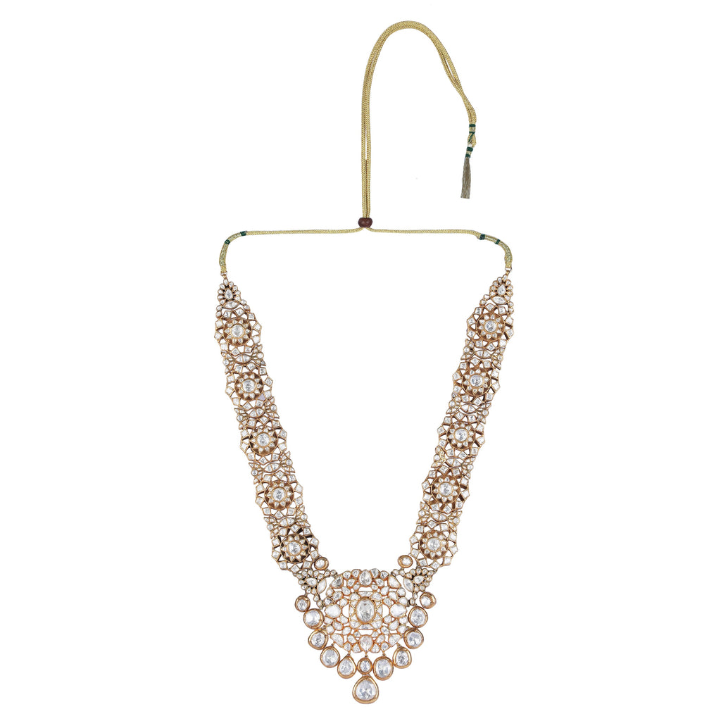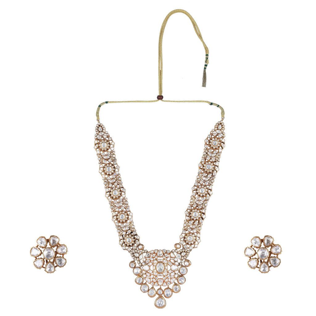 Details Size : Necklace L-16"XW-5.2" Earring L-2.6"XW-1.3" Stone Setting : Kundan String(s) : Drop(s) : Finish : Gold Finding : Dori &...