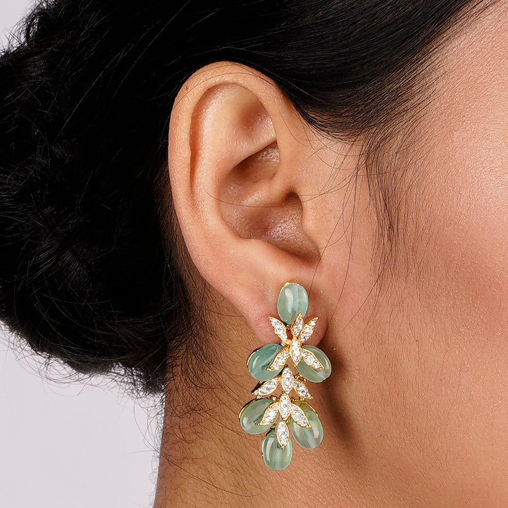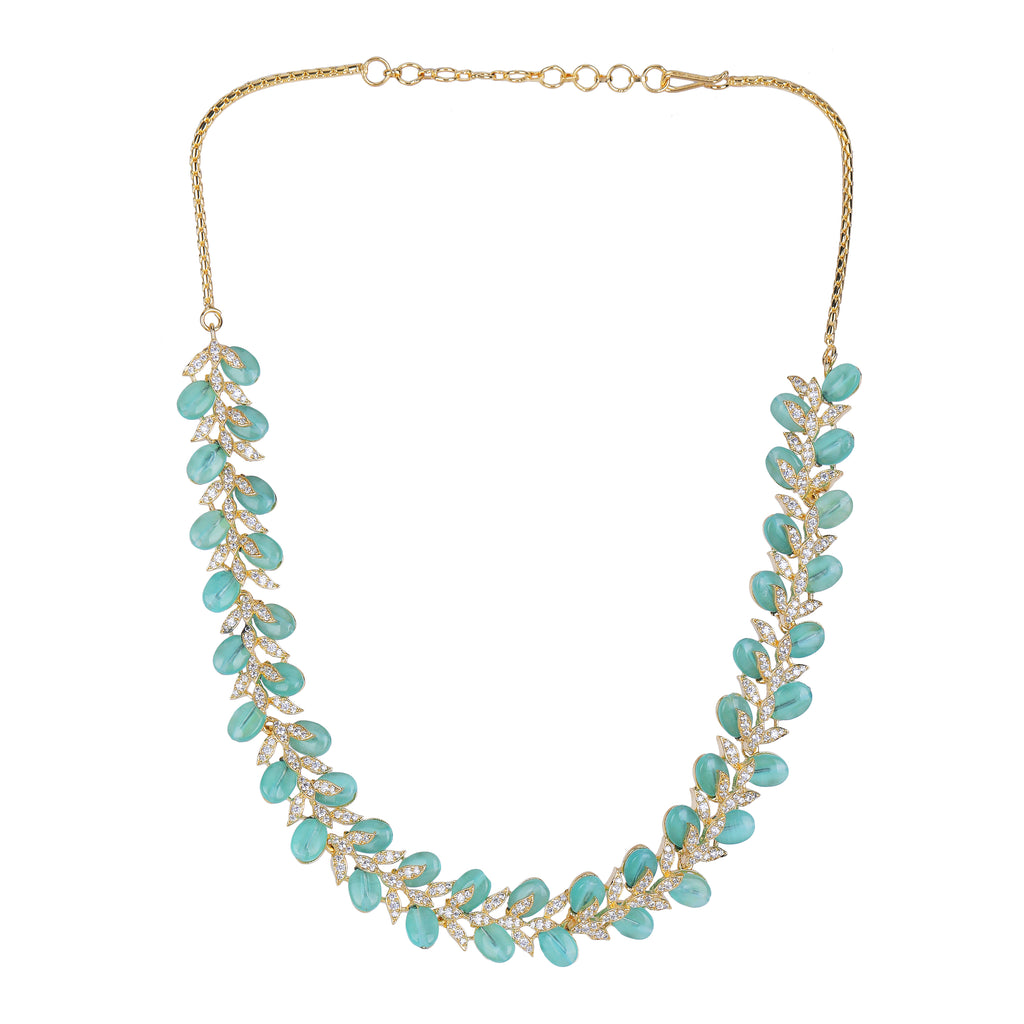 Details Size : Necklace L-8"XW-1.8" Earring L-0.7"XW-0.4" Stone Setting : Zircon String(s) : Drop(s) : Finish : Gold Finding : Hook Link...