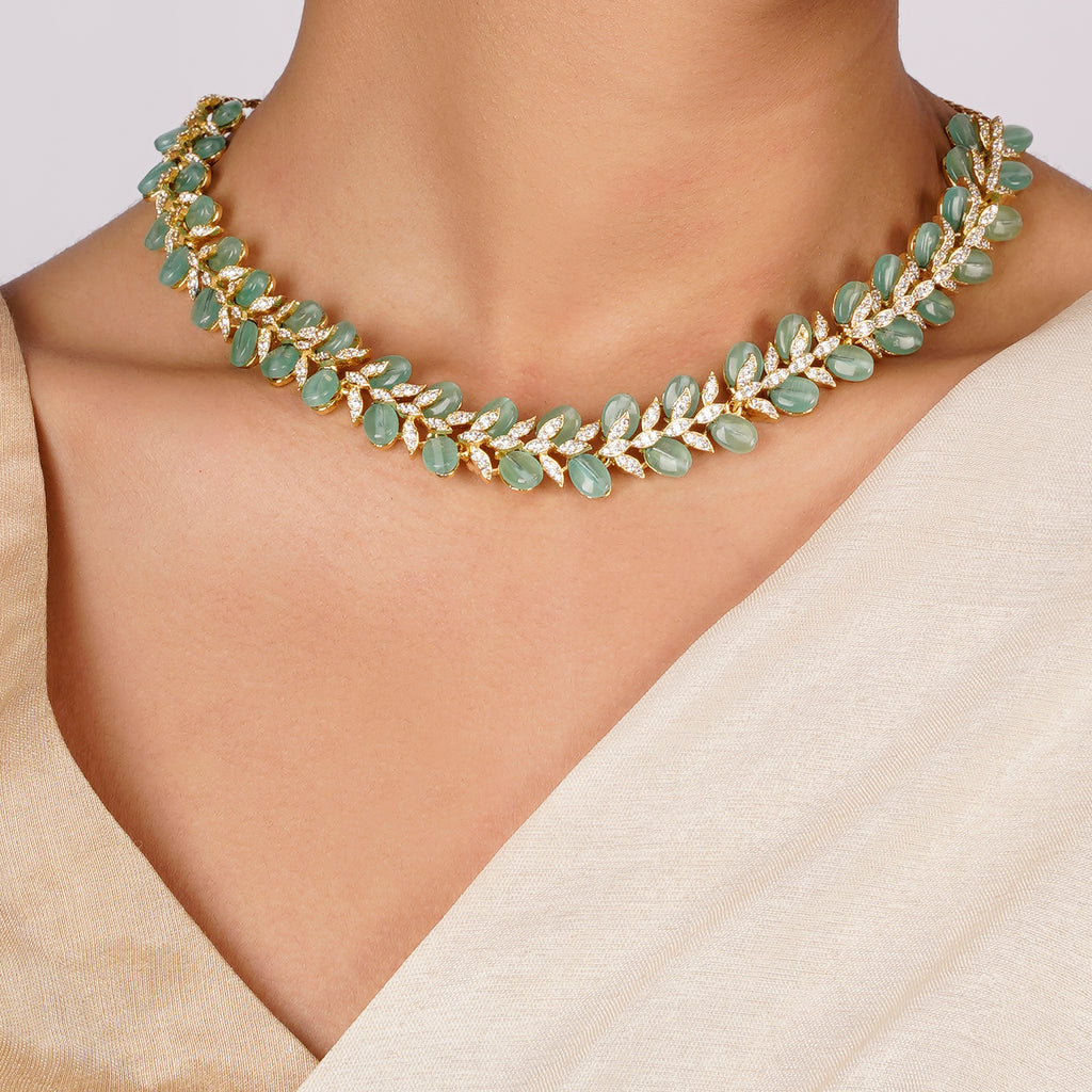 Details Size : Necklace L-22"XW-4.2" Earring L-1"XW-1" Stone Setting : Moissanite String(s) : Drop(s) : Finish : Gold Finding : dori &...