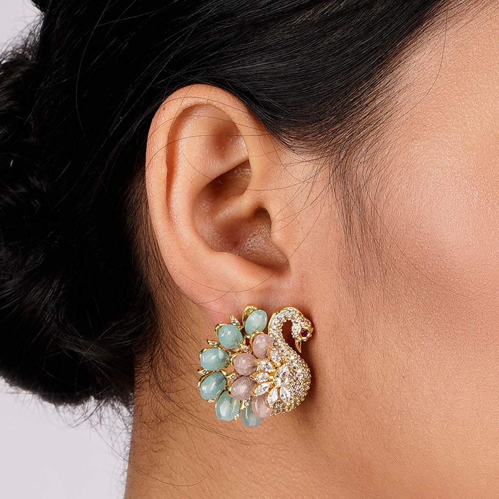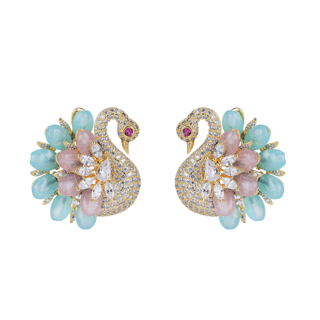 Details Size : Necklace L-10"XW-0.5" Earring L-1.4"XW-0.5" Stone Setting : Zircon String(s) : Aquamrine Drop(s) : Finish : Gold Finding : Hook...