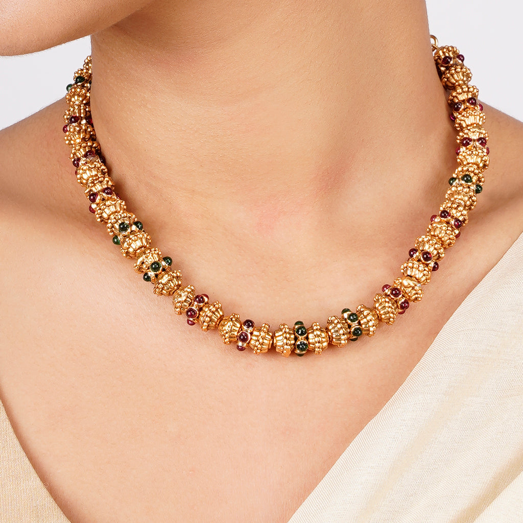 Details Size : Necklace L-16"XW-5.2" Earring L-2.6"XW-1.3" Stone Setting : Kundan String(s) : Drop(s) : Finish : Gold Finding : Dori &...