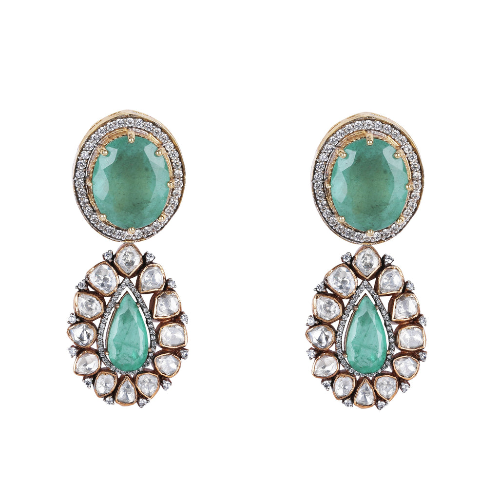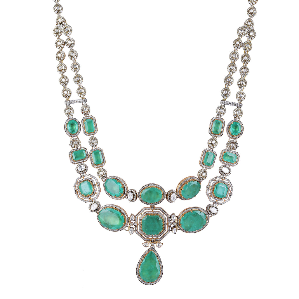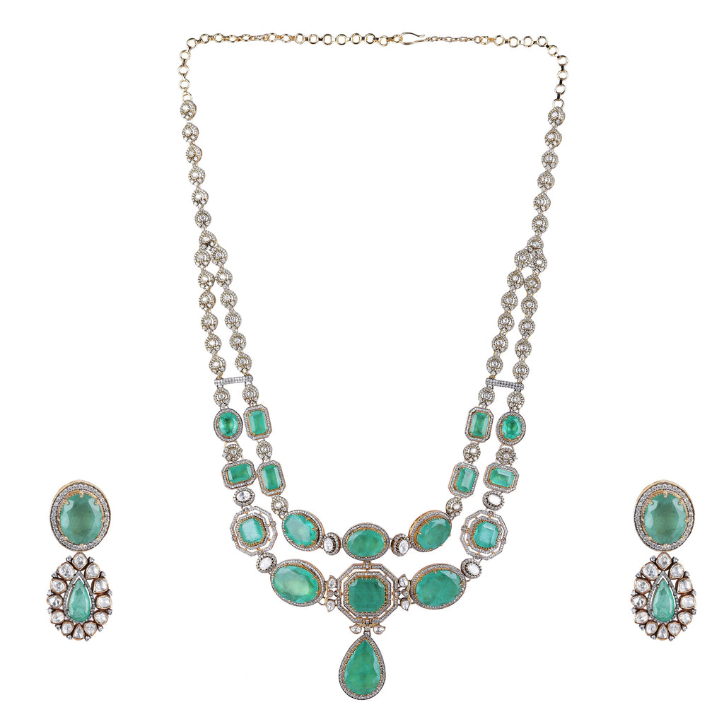 Details Size : Necklace L-22"XW-4.2" Earring L-1"XW-1" Stone Setting : Moissanite String(s) : Drop(s) : Finish : Gold Finding : dori &...