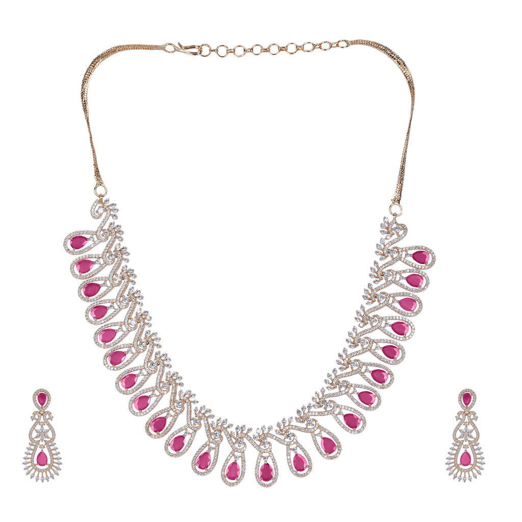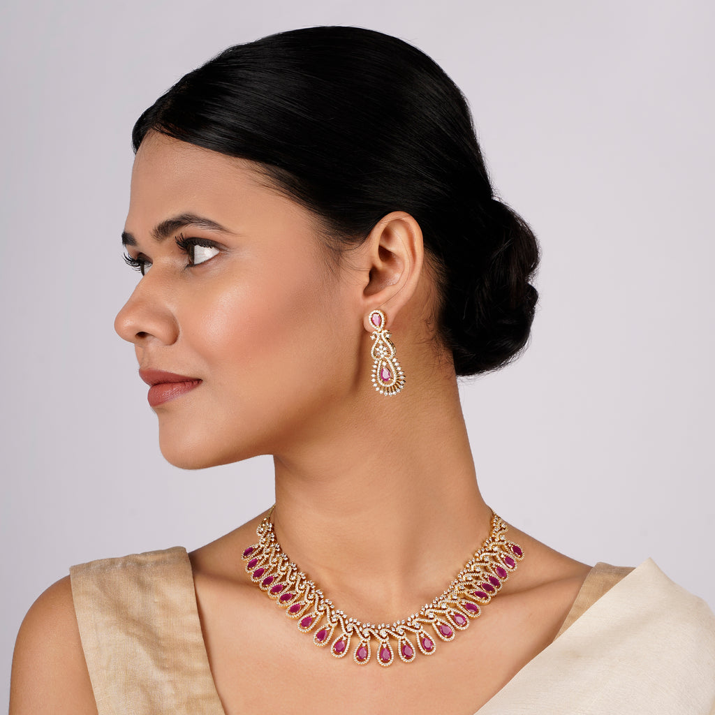 Details Size : Necklace L-8"XW-1.8" Earring L-0.7"XW-0.4" Stone Setting : Zircon String(s) : Drop(s) : Finish : Gold Finding : Hook Link...