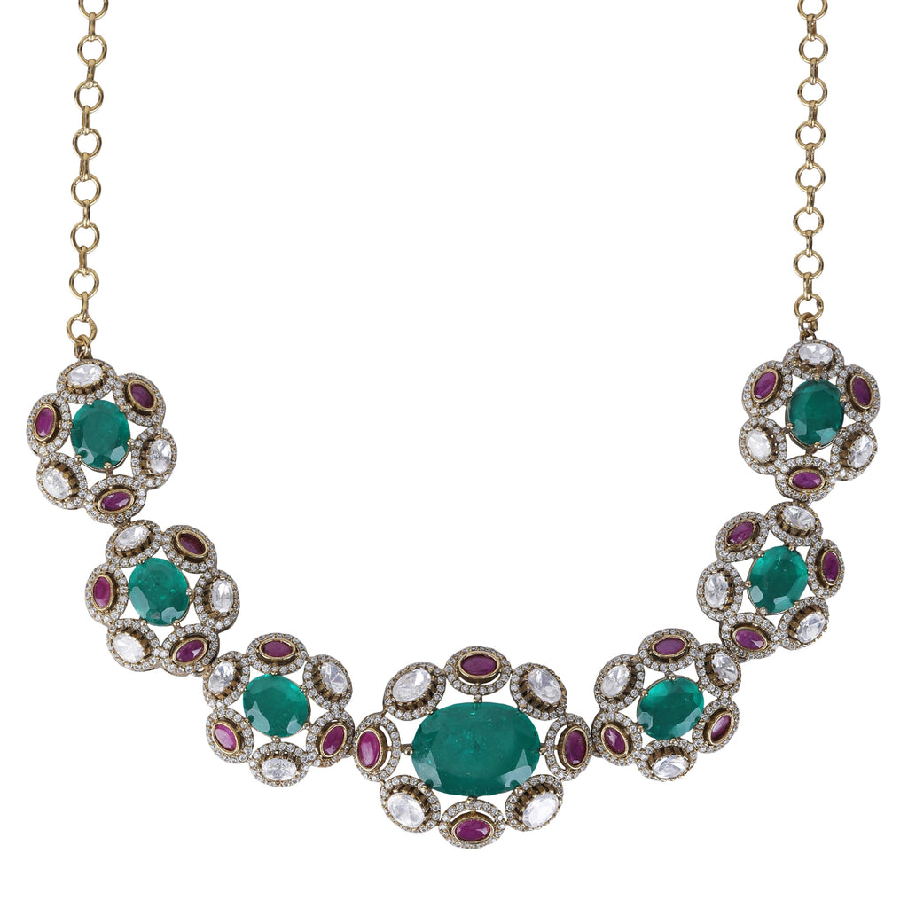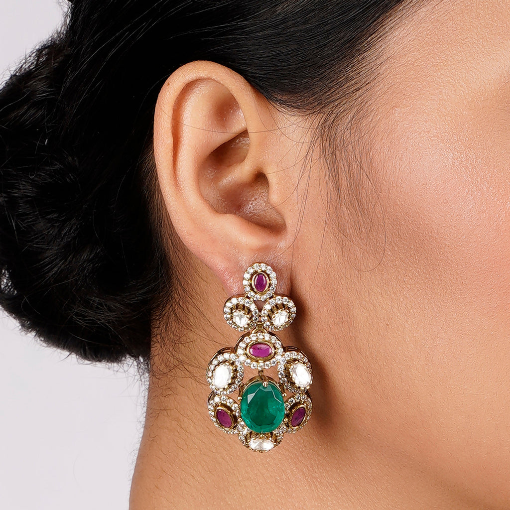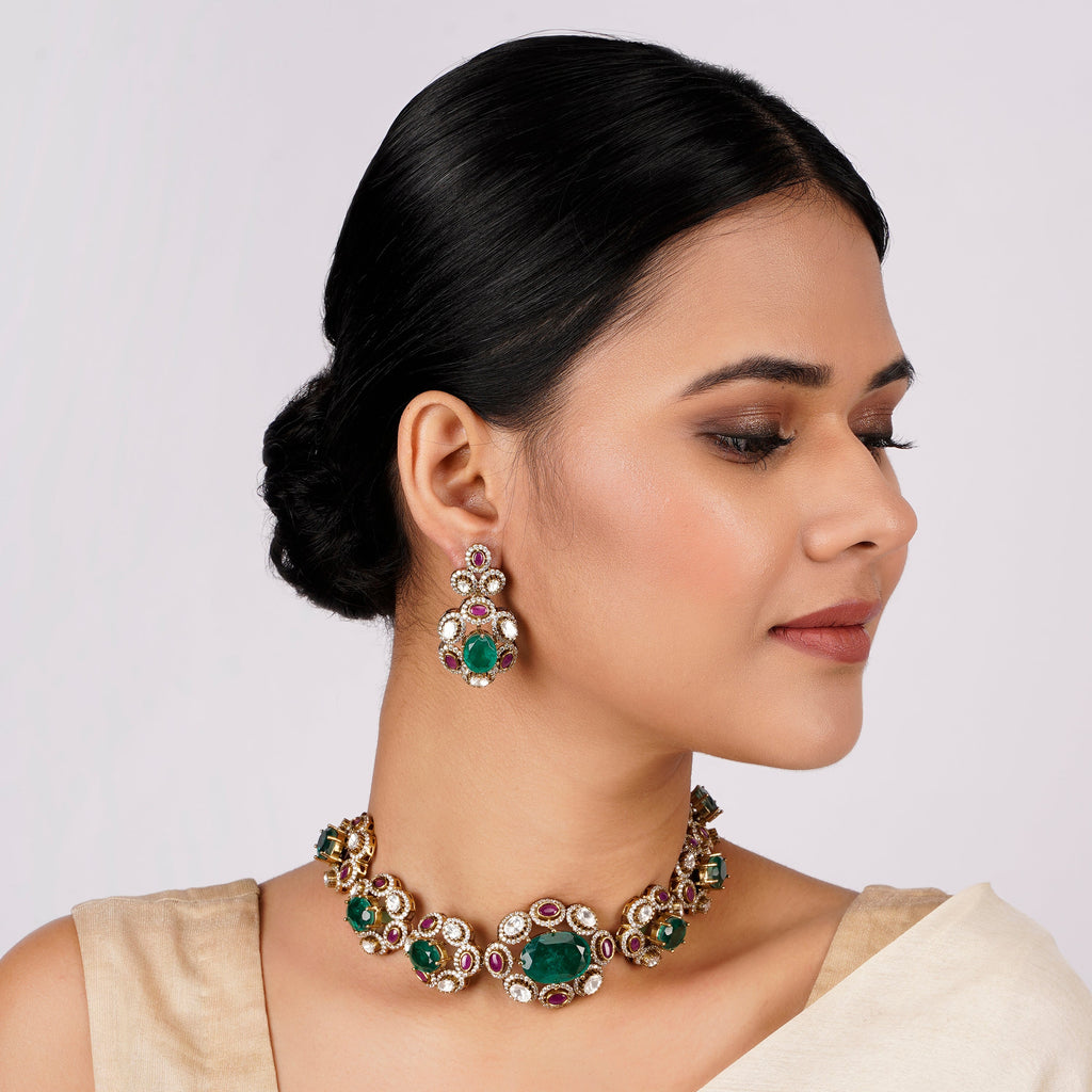 Details Size : Necklace L-22"XW-4.2" Earring L-1"XW-1" Stone Setting : Moissanite String(s) : Drop(s) : Finish : Gold Finding : dori &...