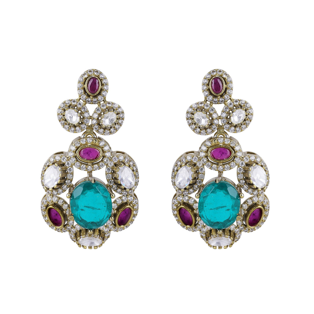 Details Size : Necklace L-8"XW-1.8" Earring L-0.7"XW-0.4" Stone Setting : Zircon String(s) : Drop(s) : Finish : Gold Finding : Hook Link...