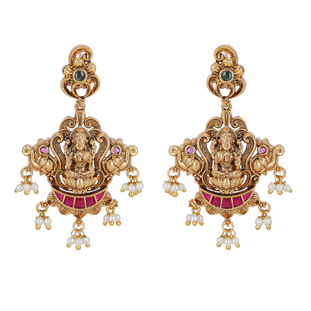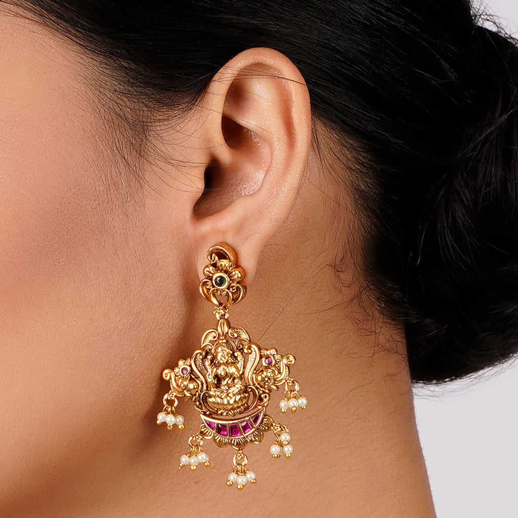 Details Size : Necklace L-16"XW-5.2" Earring L-2.6"XW-1.3" Stone Setting : Kundan String(s) : Drop(s) : Finish : Gold Finding : Dori &...