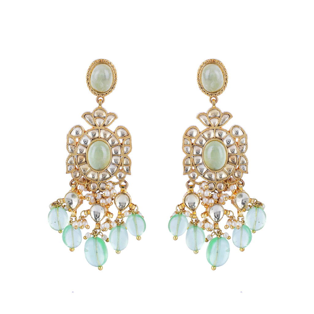 Details Size : Necklace L-10"XW-0.5" Earring L-1.4"XW-0.5" Stone Setting : Zircon String(s) : Aquamrine Drop(s) : Finish : Gold Finding : Hook...