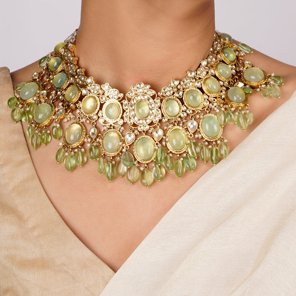 Details Size : Necklace L-22"XW-4.2" Earring L-1"XW-1" Stone Setting : Moissanite String(s) : Drop(s) : Finish : Gold Finding : dori &...