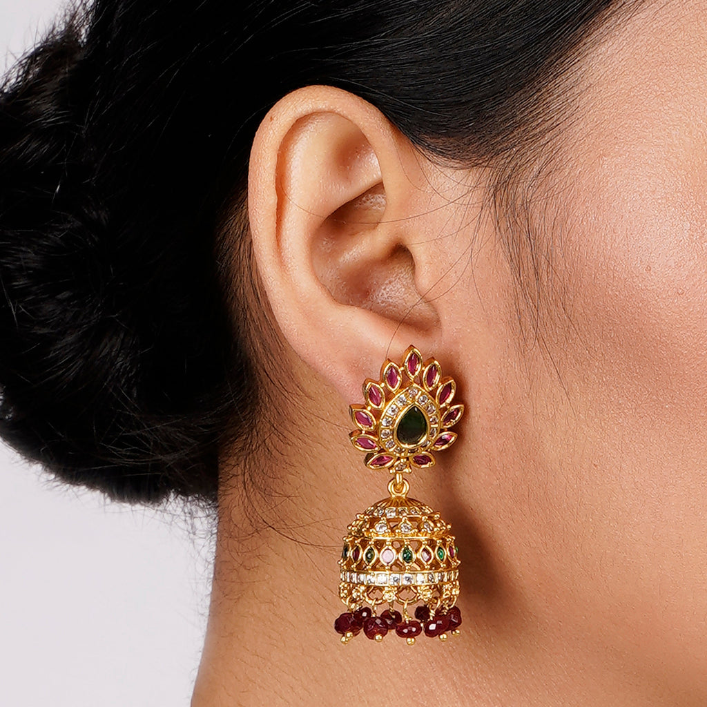 Details Size : Necklace L-8"XW-1.8" Earring L-0.7"XW-0.4" Stone Setting : Zircon String(s) : Drop(s) : Finish : Gold Finding : Hook Link...