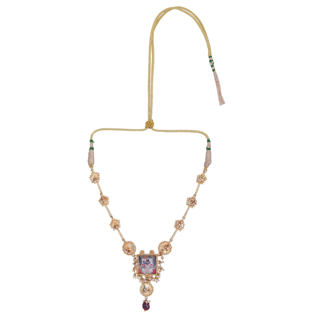 Details Size : Necklace L-19"X W- 0.5" Stone Setting : Kundan String(s) : chain Drop(s) : Finish : 22K Gold Plated Finding...