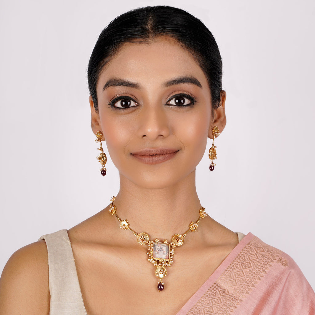 Details Size : Necklace L-10"X W- 1" Stone Setting : Zircon String(s) : Coral Drop(s) : Finish : 22K Gold Plated Finding : Hook Link& Push Back Art Karat Jewelry is plated with 22k gold, studded with precious, semi-precious and...