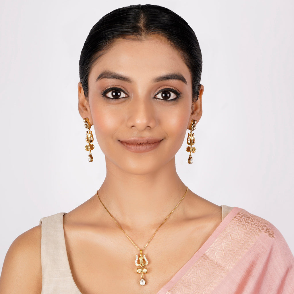 Details Size : Necklace L-20"X W- 0.5 Earring L 0.7"X W0.5" Stone Setting : Zircon String(s) : chain Drop(s) : Finish :...