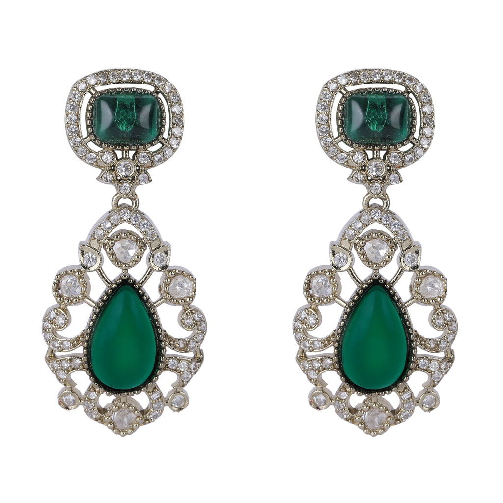Details Size : Necklace L-18"Xw-0.6" Earring L-0.4"XW-0.4" Stone Setting : zircon String(s) : Chain Drop(s) : Finish : Gold Finding...