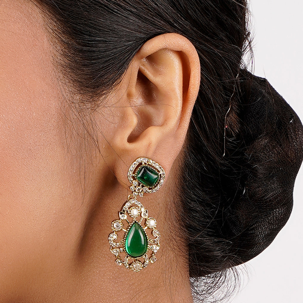 Details Size : Necklace L-18"Xw-0.6" Earring L-0.4"XW-0.4" Stone Setting : zircon String(s) : Chain Drop(s) : Finish : Gold Finding : Hook Link& Push Back Art Karat Jewelry is plated with 22k gold, studded with precious, semi-precious and...