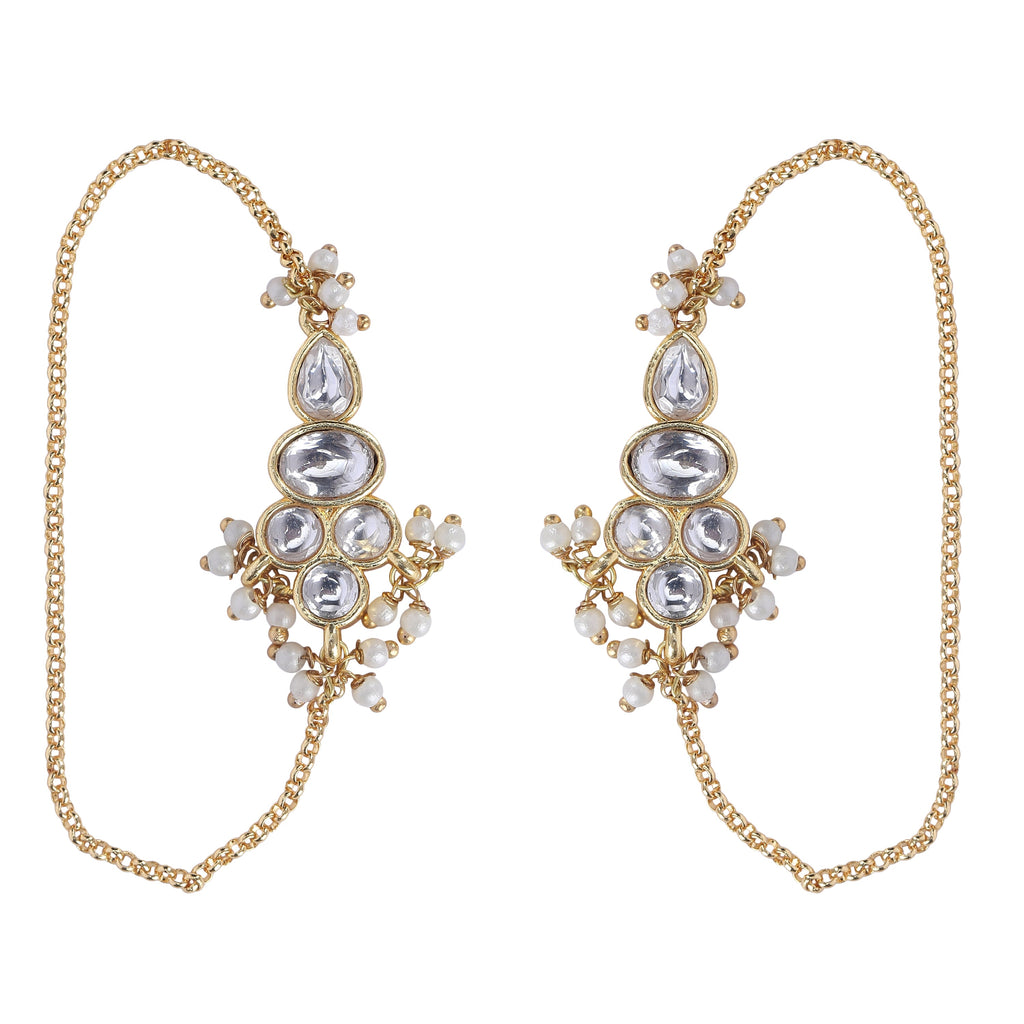 Details Size : Earring L-1.3" W- .04" Stone Setting : Kundan String(s) : Drop(s) : Fresh Water Pearl Finish : 22k gold plated Finding : chain Art Karat Jewelry is plated with 22k gold, studded with precious, semi-precious and natural...