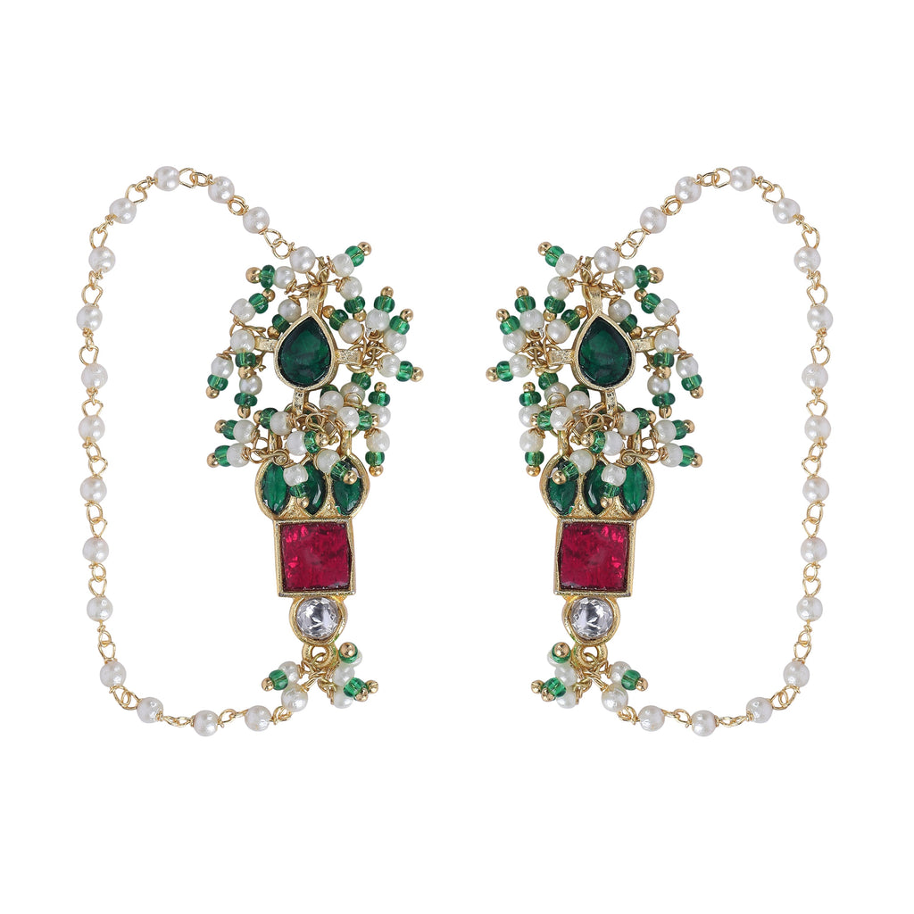 Details Size : Earring L-1.3" W- .06" Stone Setting : Kundan String(s) : Drop(s) : Fresh Water Pearl Finish : 22k gold plated Finding : chain Art Karat Jewelry is plated with 22k gold, studded with precious, semi-precious and natural...