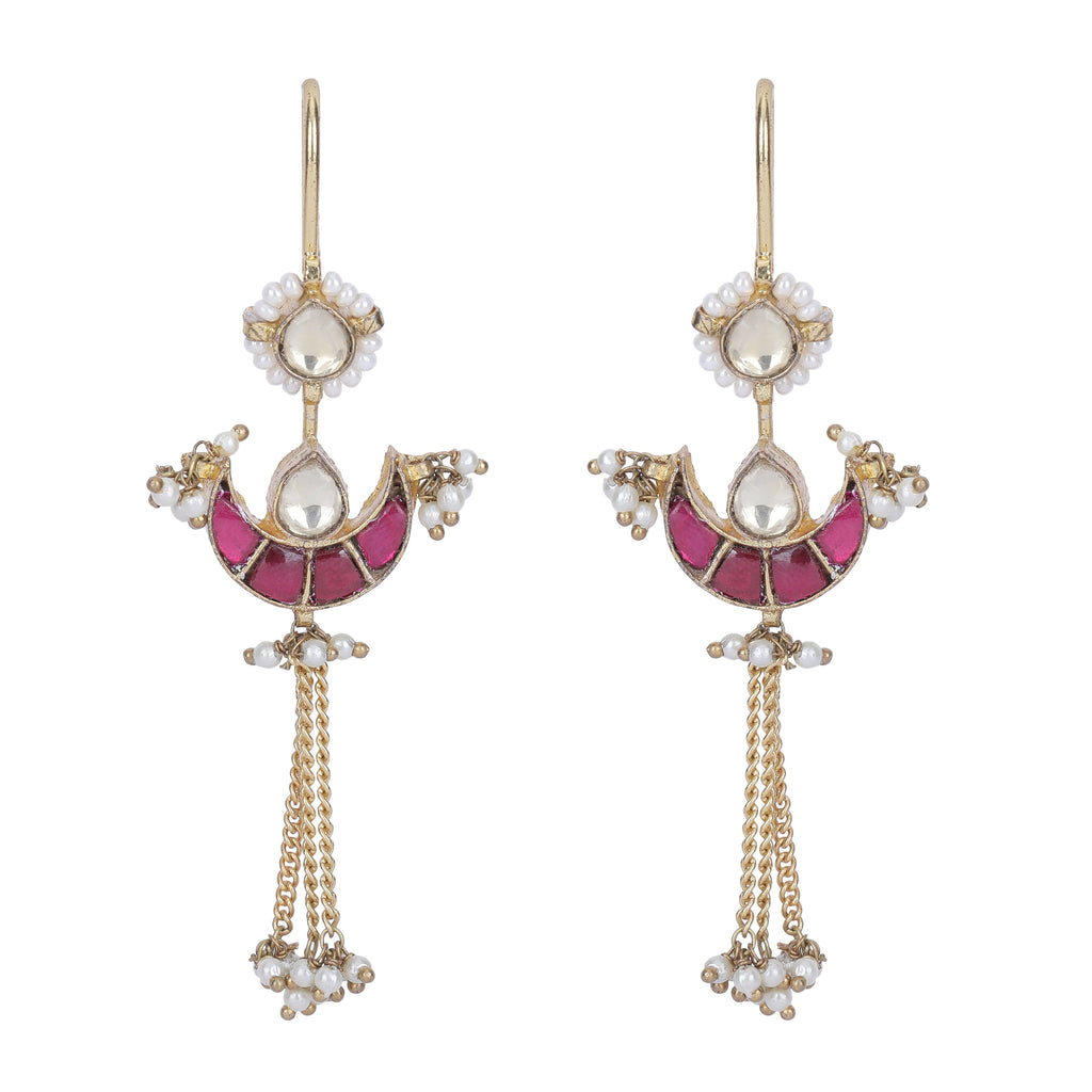 Details Size : Earring L- 2.3" XW-.05" Stone Setting : String(s) : Drop(s) : Finish : Gold /Silver Finding : Push Back Art Karat Jewelry is plated with 22k gold, studded with precious, semi-precious and natural gemstones. We offer a...