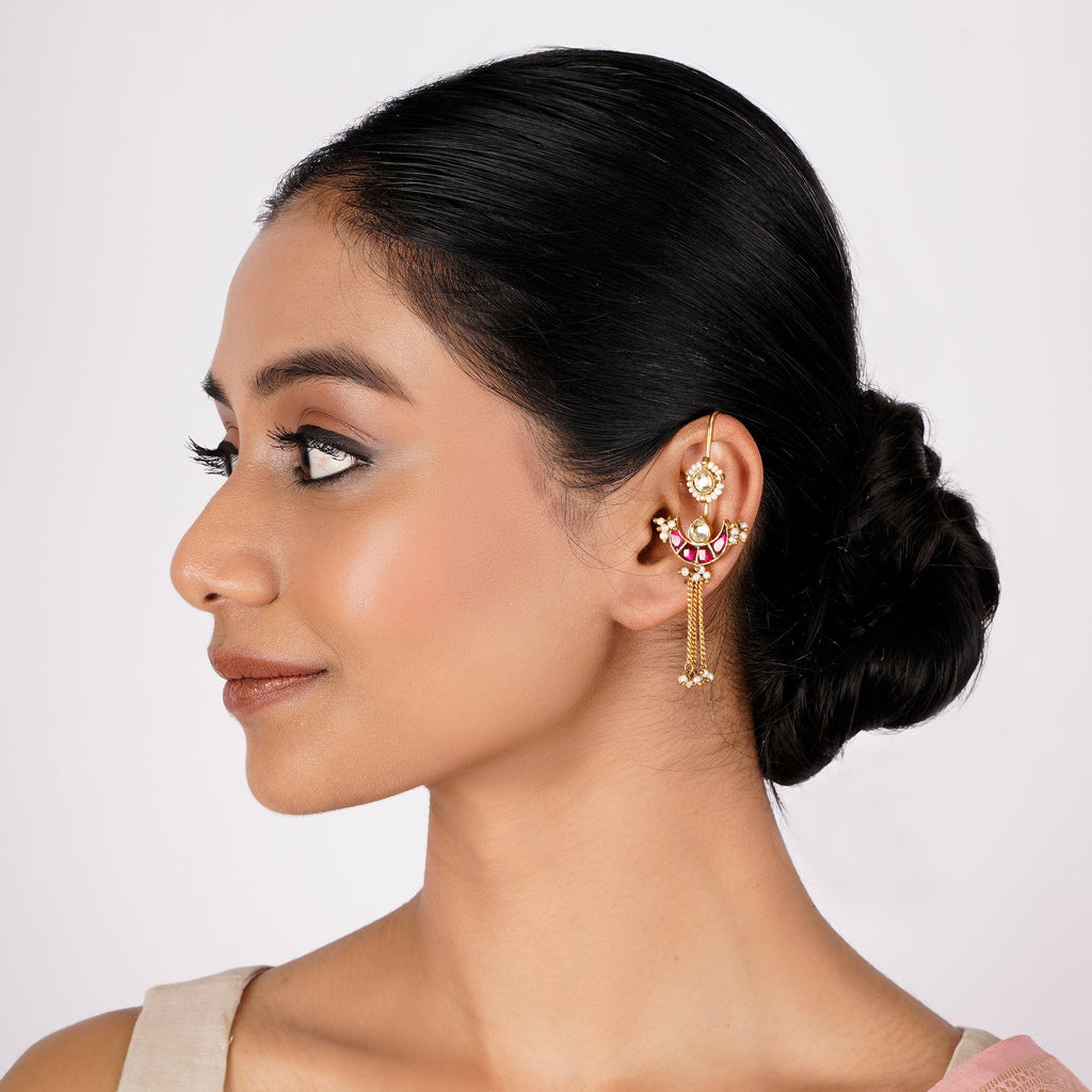 Details Size : Earring L- 1.2" XW-.05" Stone Setting : Zircon String(s) : Drop(s) : Finish : 22K Gold Plated Finding : Push Back Art Karat Jewelry is plated with 22k gold, studded with precious, semi-precious and natural gemstones. We...