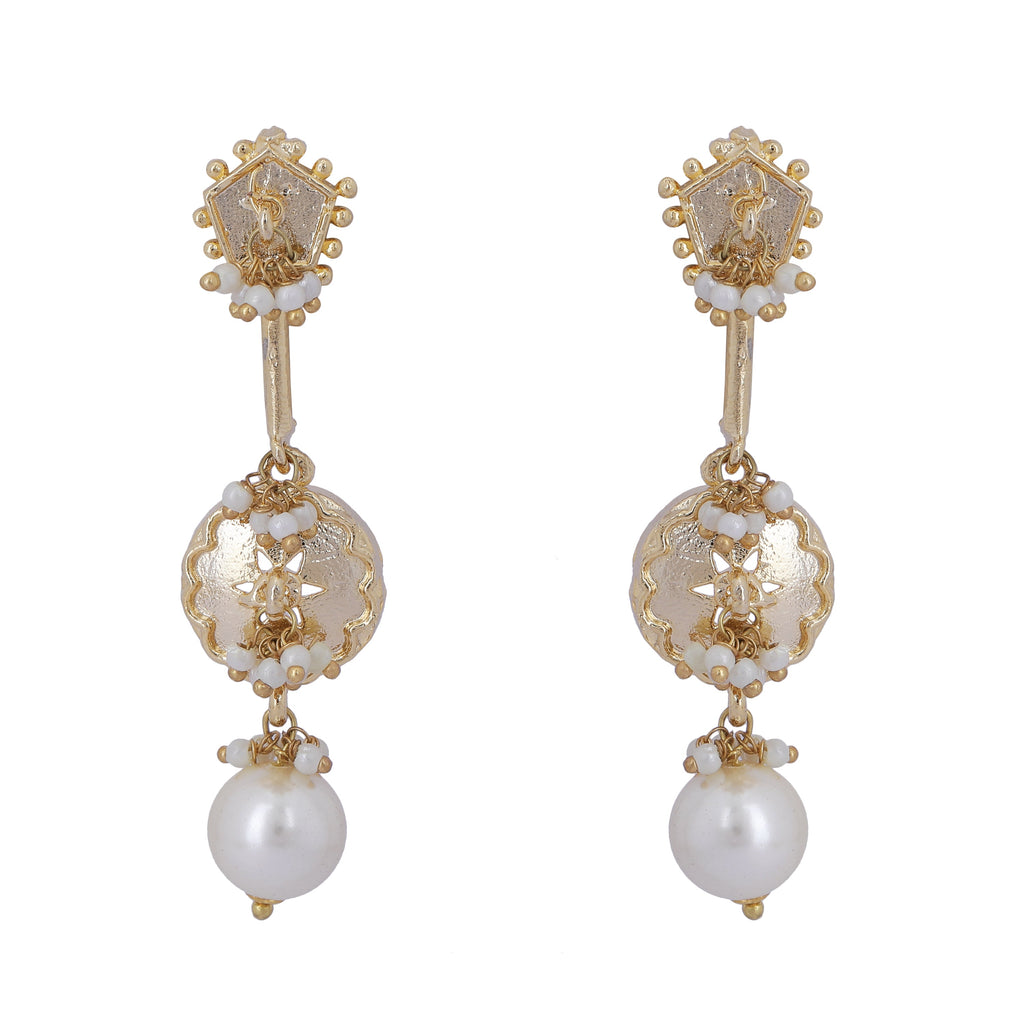 Details Size : Earring L- 3" XW-.07" Stone Setting : Kundan String(s) : Drop(s) : Fresh Water Pearl Finish : 22K Gold Plated Finding : Art Karat Jewelry is plated with 22k gold, studded with precious, semi-precious and natural gemstones....