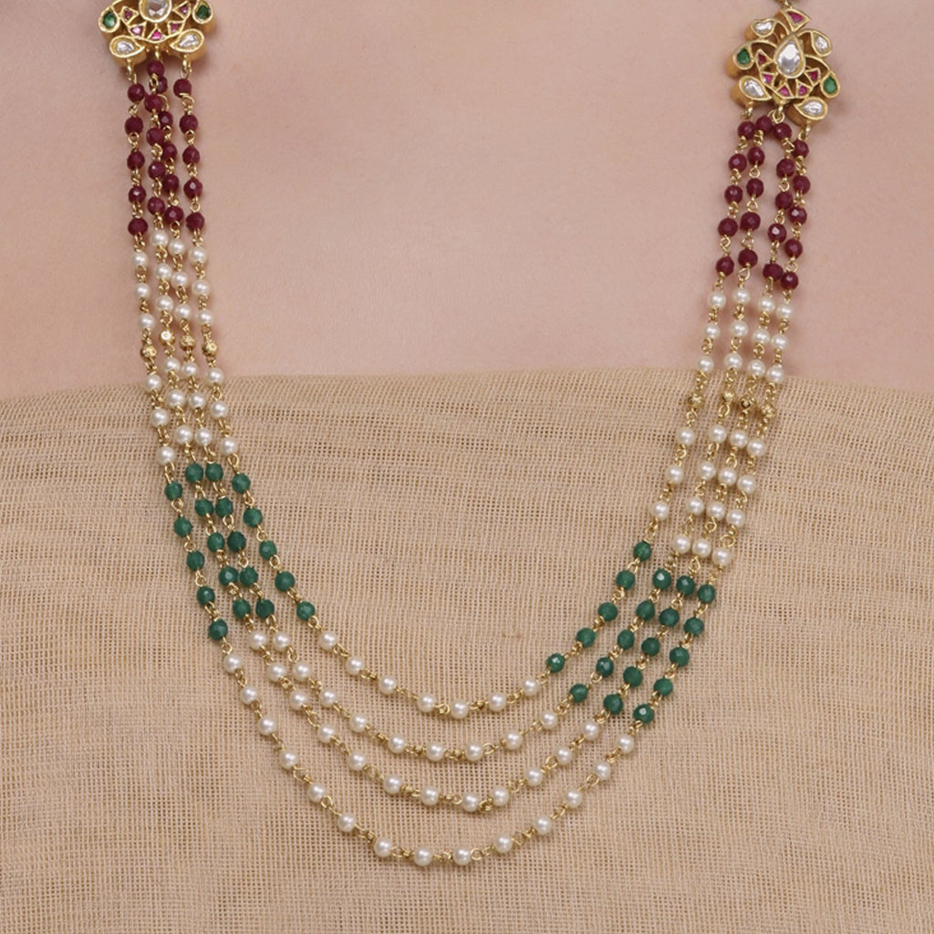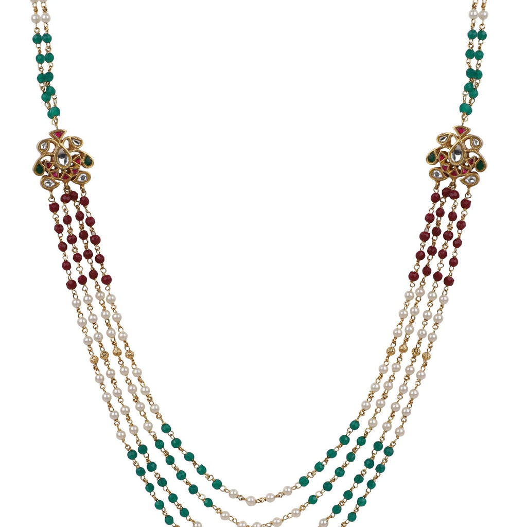 DETAILS Size: 16"L X 0.6"W 0.8"L X 0.5"W Stone Setting: Rubies & Zircon String(s): Pearls Drop(s): _ Finish: Gold Plated Finding: Hooks...