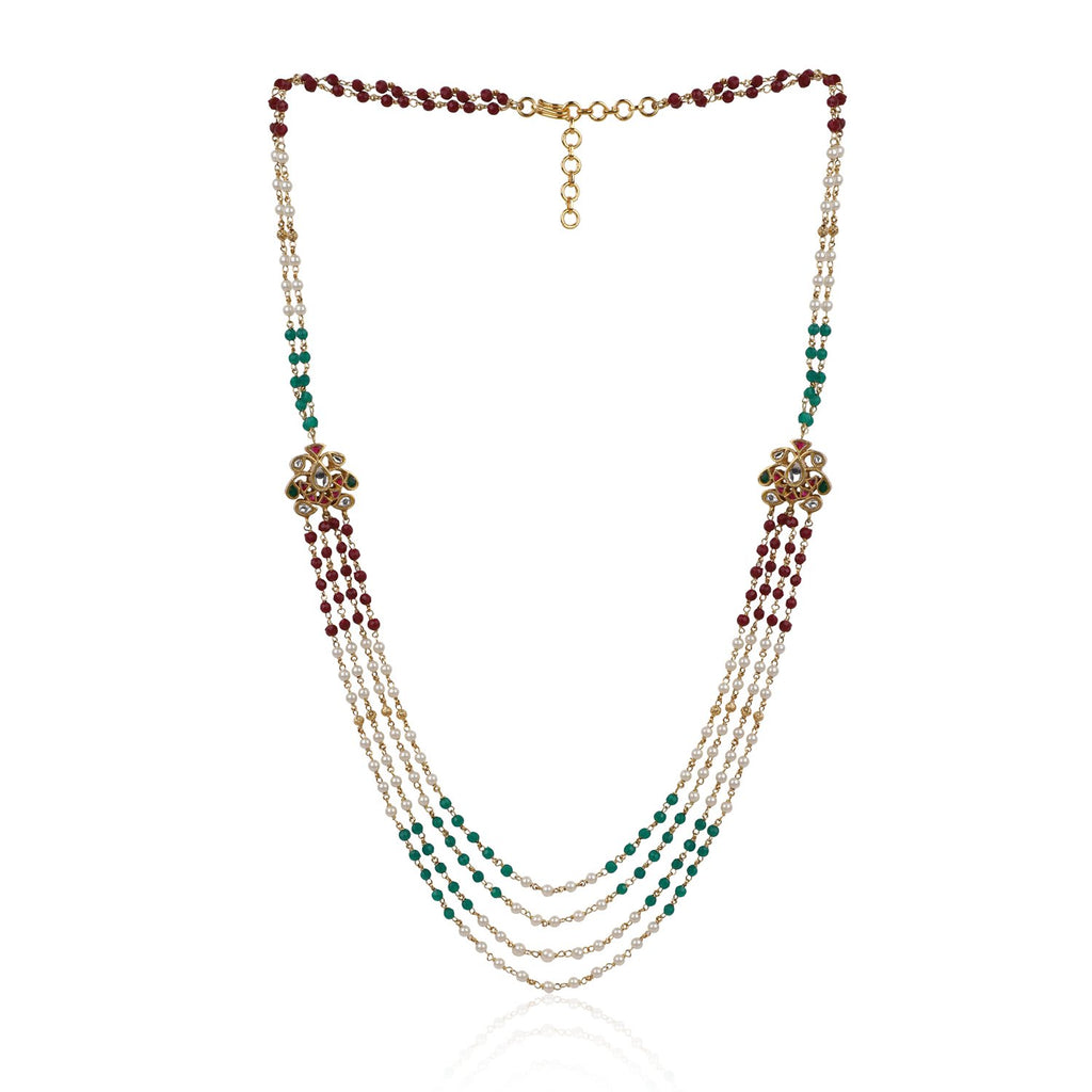 DETAILS Size: 0.2"L X 1.6"W Stone Setting: Kundan String(s): - Drop(s): White Pearls & Ruby Finish: 22k Gold Plated. Finding: Adjustable SHIPPING & RETURNS Free shipping on all orders within India. You have 30 days to request an exchange post receiving...