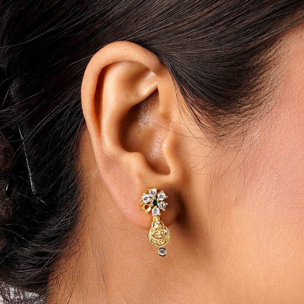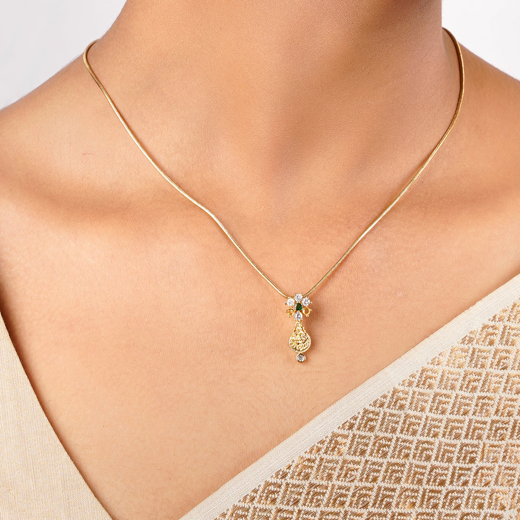 Details Size : Necklace L-8"XW-1.8" Earring L-0.7"XW-0.4" Stone Setting : Zircon String(s) : Drop(s) : Finish : Gold Finding : Hook Link...