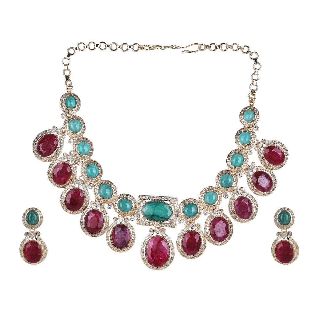 Details Size : Necklace L-20"XW-1.3" Earring L-1"XW-0.7" Stone Setting : Zircon String(s) : Drop(s) : Finish : Gold Finding : Hook Link...