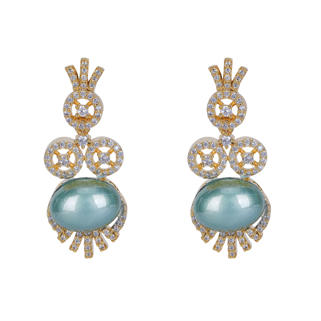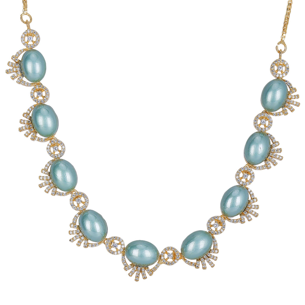 Details Size : Necklace L-10"XW-0.5" Earring L-1.4"XW-0.5" Stone Setting : Zircon String(s) : Aquamrine Drop(s) : Finish : Gold Finding : Hook...
