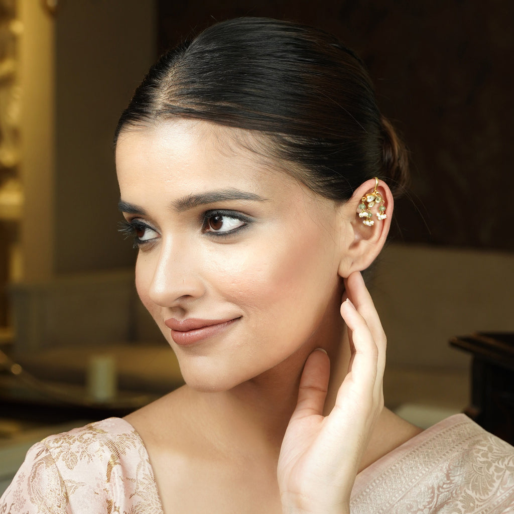 Details Size : Earcuff L-.8" W-.08" Stone Setting : Kundan String(s) : Drop(s) : Fresh Water Pearls Finish : 22k Gold Plated ...