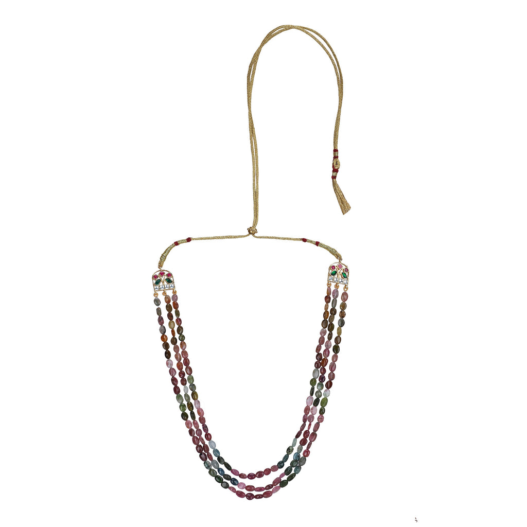 Details Size : Bracelet L-7.5"XW-.8" Stone Setting : Kundan String(s) : Taarmoti Drop(s) : Ruby Finish : 22K Gold Plated Finding :...