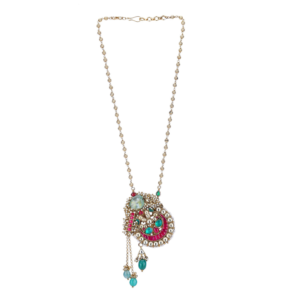 Details Size : Necklace L-22" X W-1.3" Earring L-1"XW- .2" Stone Setting : Kundan String(s) : Gold chain & Rosequartz Drop(s) : Finish : 22K Gold Plated Finding : Hook link Art Karat Jewelry is plated with 22k gold, studded...