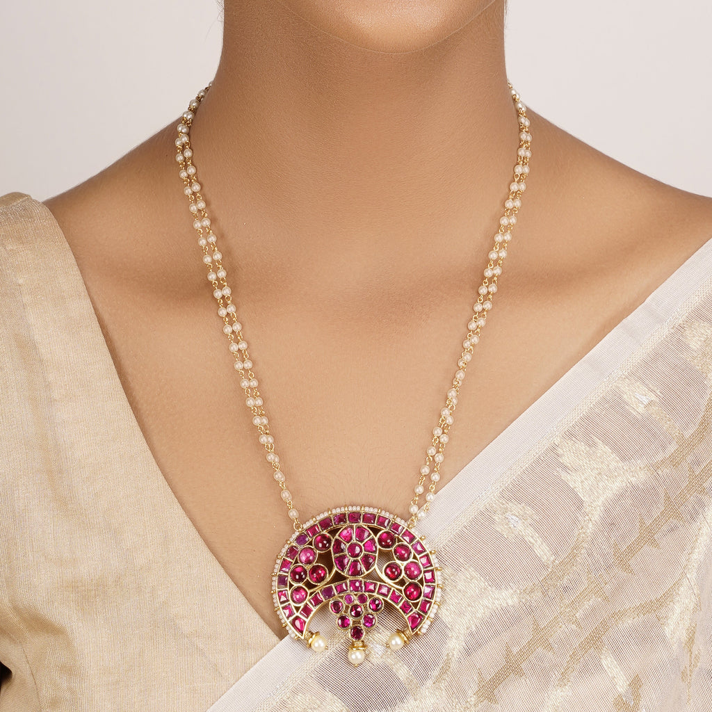 Details Size : Necklace L-9" X W-1" Earring L-1"XW- .3" Stone Setting : Kundan String(s) : Fresh Water Pearl Drop(s) : Finish...