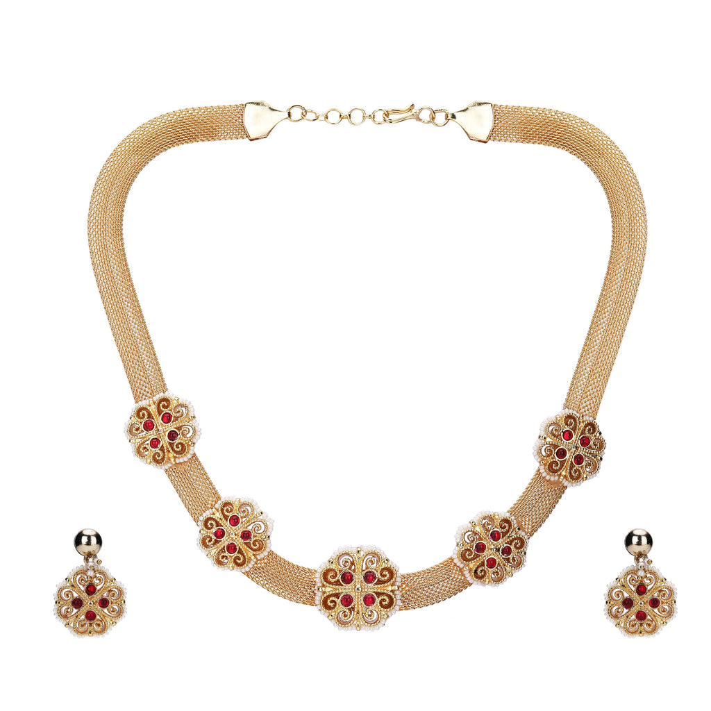 Details Size : Necklace L-22" X W-1.3" Earring L-1"XW- .2" Stone Setting : Kundan String(s) : Gold chain & Rosequartz Drop(s) : Finish : 22K Gold Plated Finding : Hook link Art Karat Jewelry is plated with 22k gold, studded...