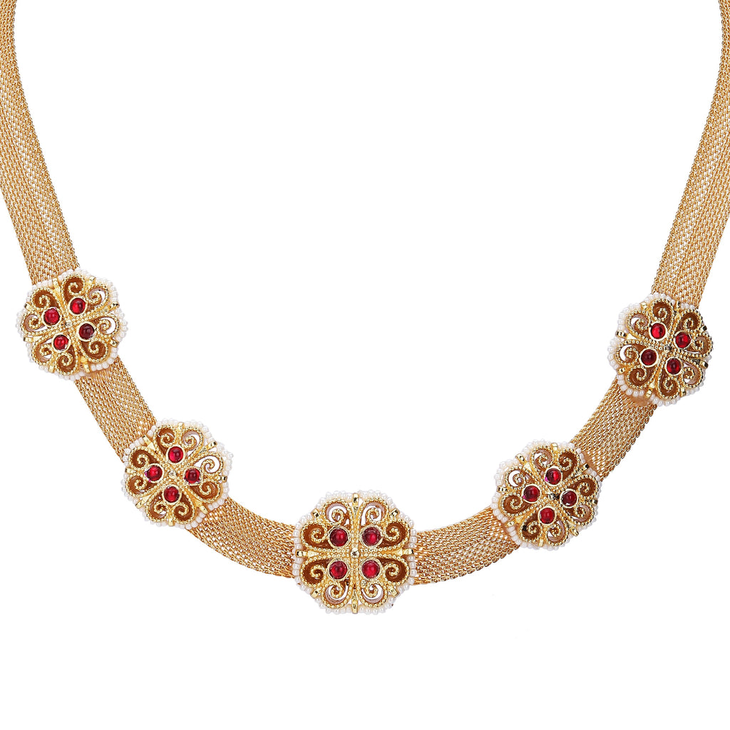 Details Size : Necklace L-23" X W-1" Earring L-1.6"XW- 4" Stone Setting : Kundan String(s) : Pearl Gold bead Coral Drop(s) : Coral Finish : 22K Gold Plated Finding : Hook link& Push back Art Karat Jewelry is plated with...
