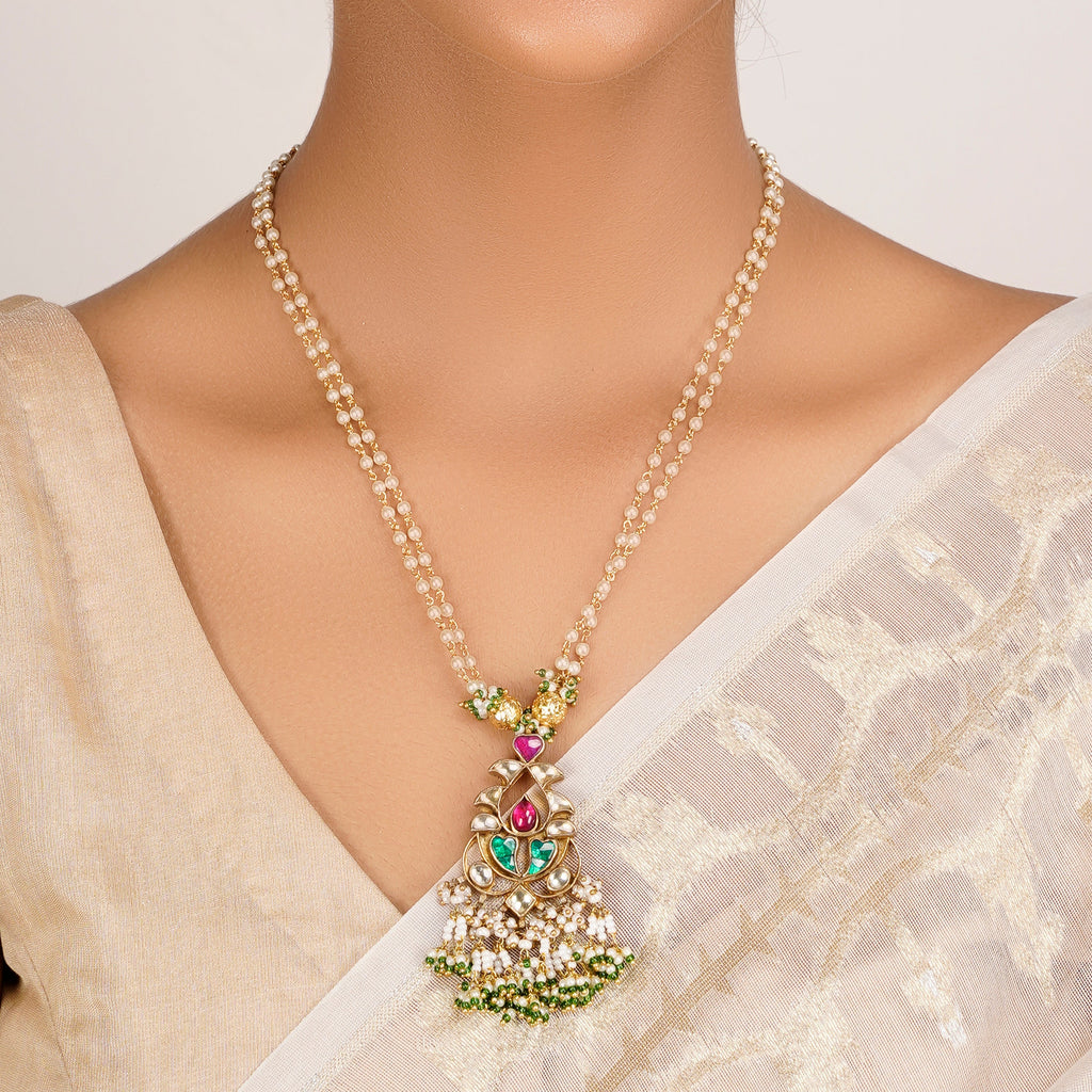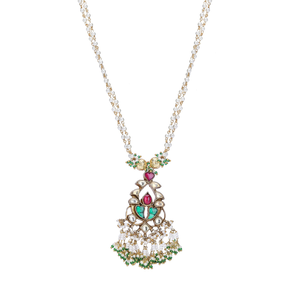 Details Size : Necklace L-9" X W-1" Earring L-1"XW- .3" Stone Setting : Kundan String(s) : Fresh Water Pearl Drop(s) : Finish...