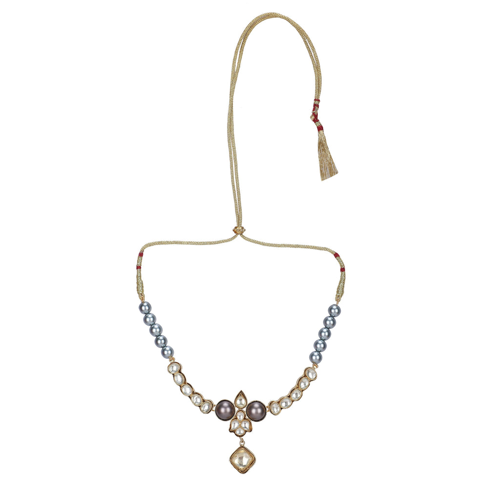 Details Size : Necklace L-9" X W-1" Earring L-1"XW- .3" Stone Setting : Kundan String(s) : Fresh Water Pearl Drop(s) : Finish...
