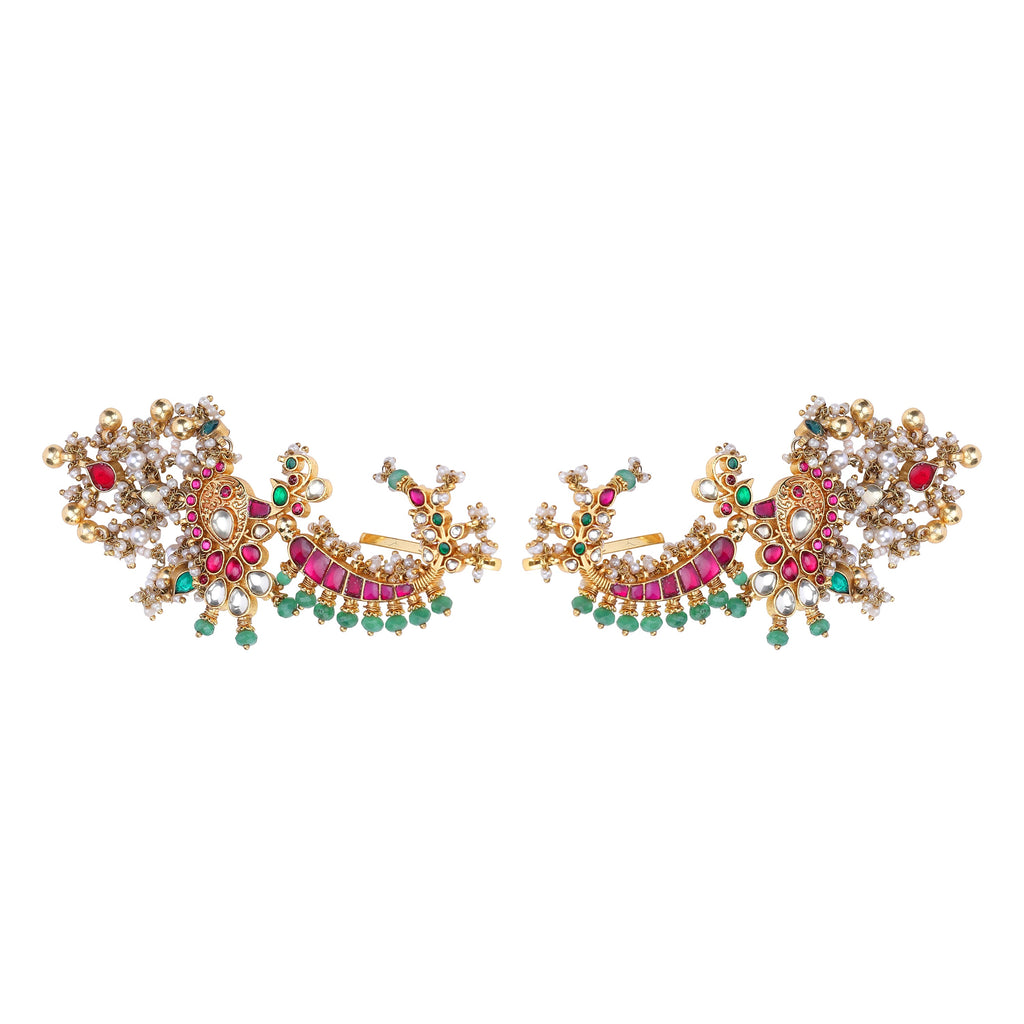 Details Size : Bracelet L-7.5"XW-.8" Stone Setting : Kundan String(s) : Taarmoti Drop(s) : Ruby Finish : 22K Gold Plated Finding : Hook Art Karat Jewelry is plated with 22k gold, studded with precious, semi-precious and natural gemstones. We offer...