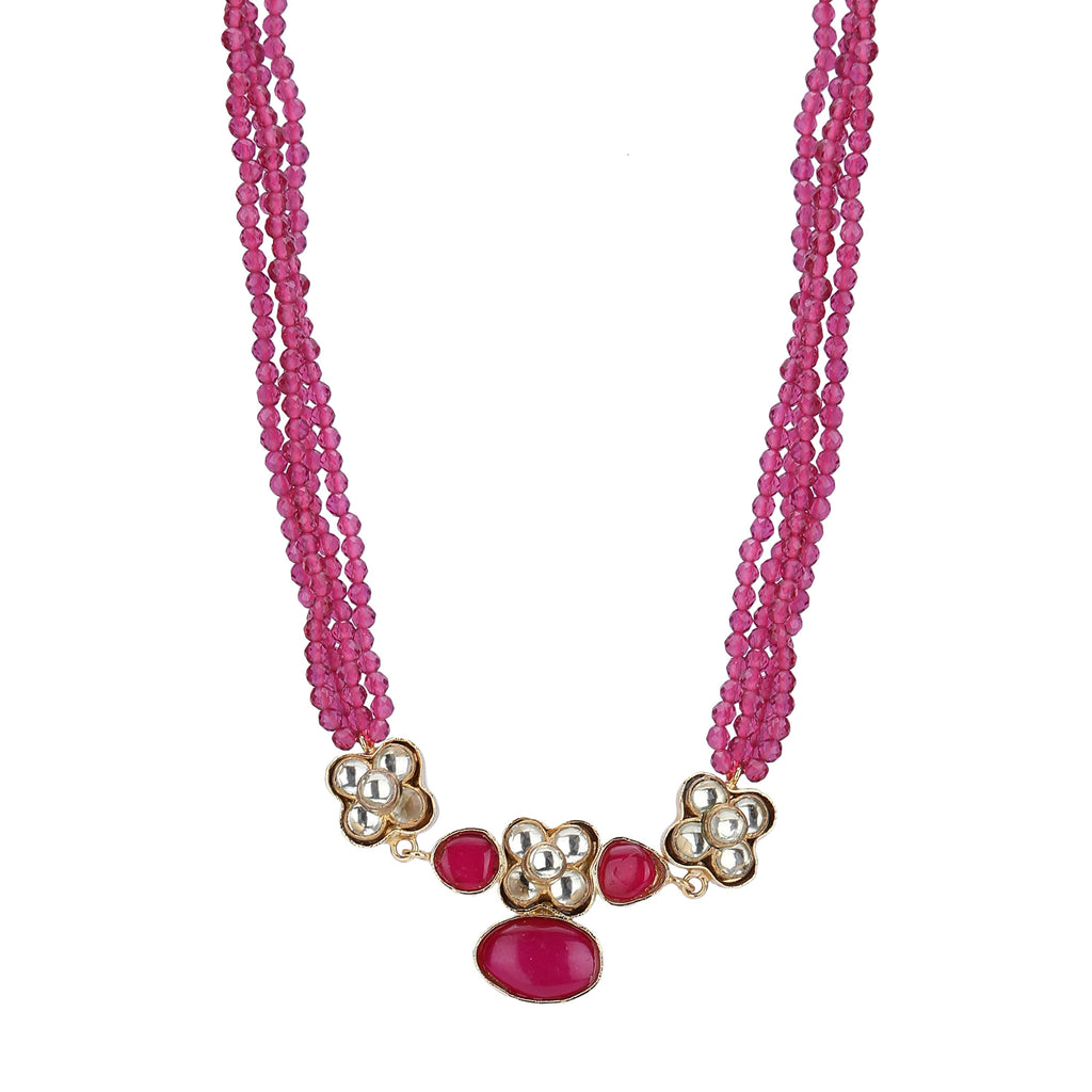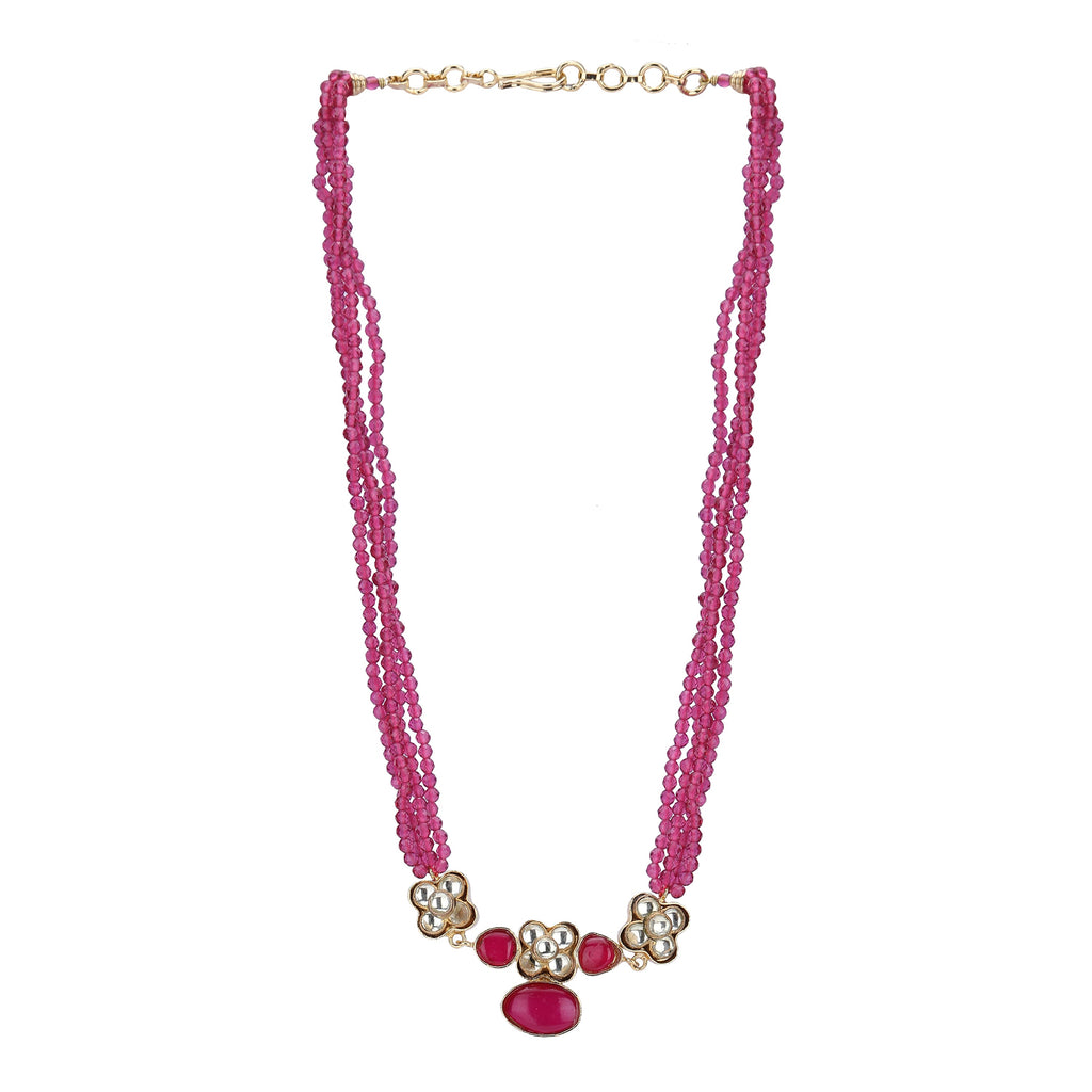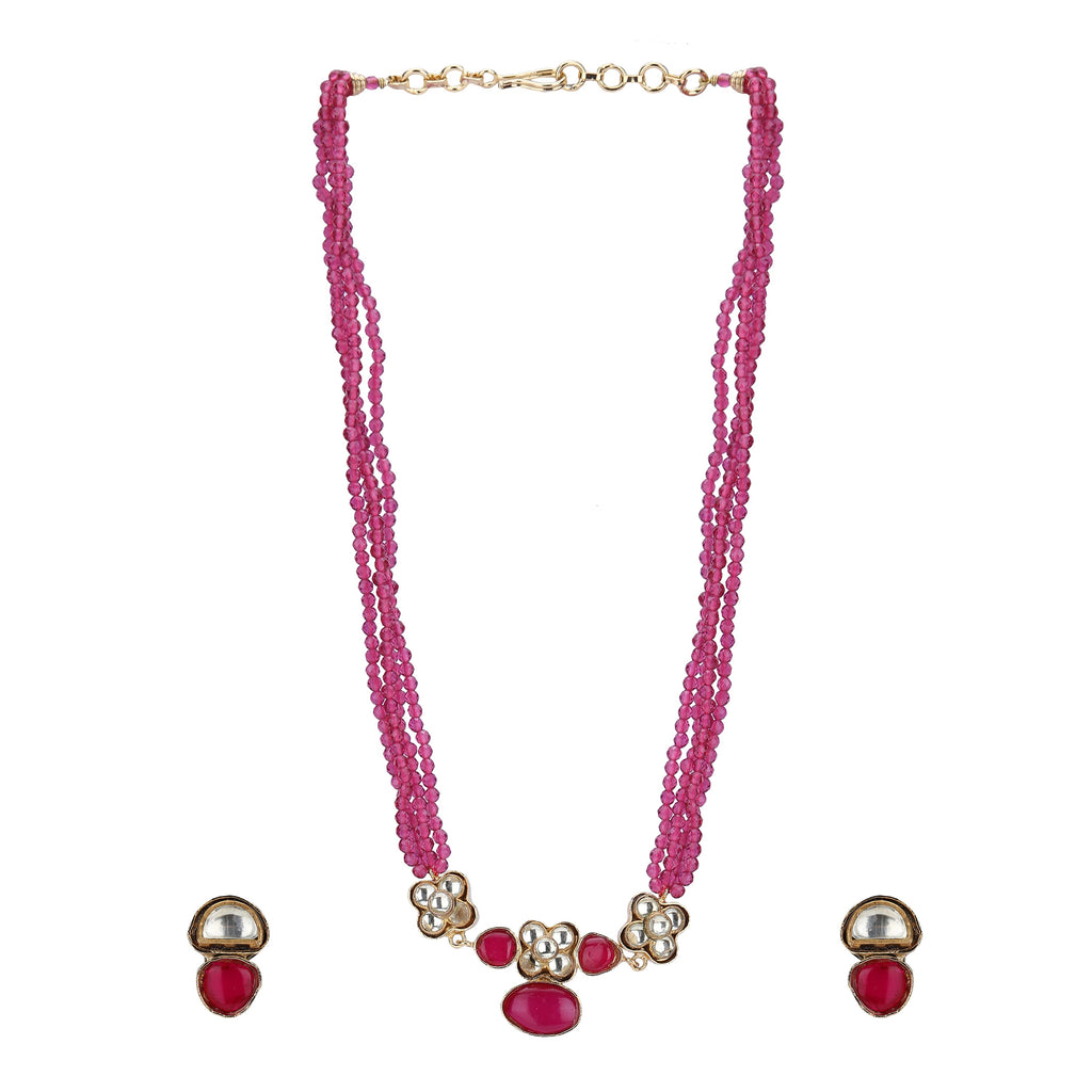 Details Size : Necklace L-22" X W-1.3" Earring L-1"XW- .2" Stone Setting : Kundan String(s) : Gold chain & Rosequartz Drop(s) : Finish : 22K Gold Plated Finding : Hook link Art Karat Jewelry is plated with 22k gold, studded...