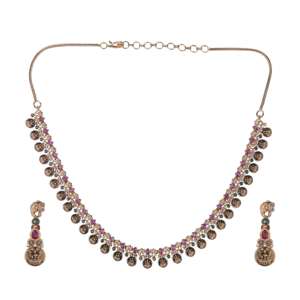 Details Size : Necklace L-20" X W-1.5" Earring L-0.8" X W-0.6" Stone Setting : String(s) : chain Drop(s) : Finish : Gold Plated Finding : Hook Link& Push Back Art Karat Jewelry is plated with 22k gold, studded with precious,...