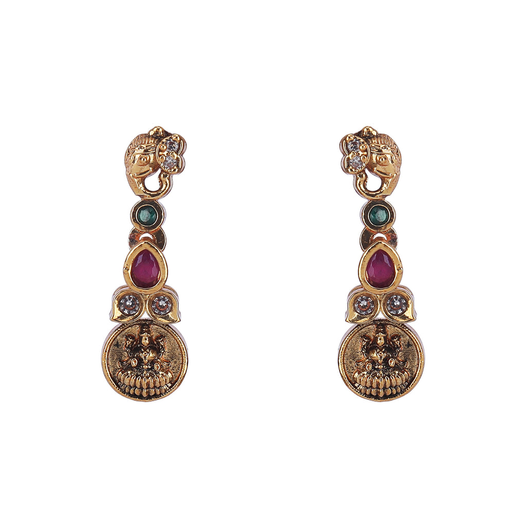 Details Size : Necklace L-21" X W-1.6" Earring L-1.3" X W-0.8" Stone Setting : Ruby String(s) : Drop(s) : Finish : Gold Plated Finding : Hook Link& Push Back Art Karat Jewelry is plated with 22k gold, studded with precious,...