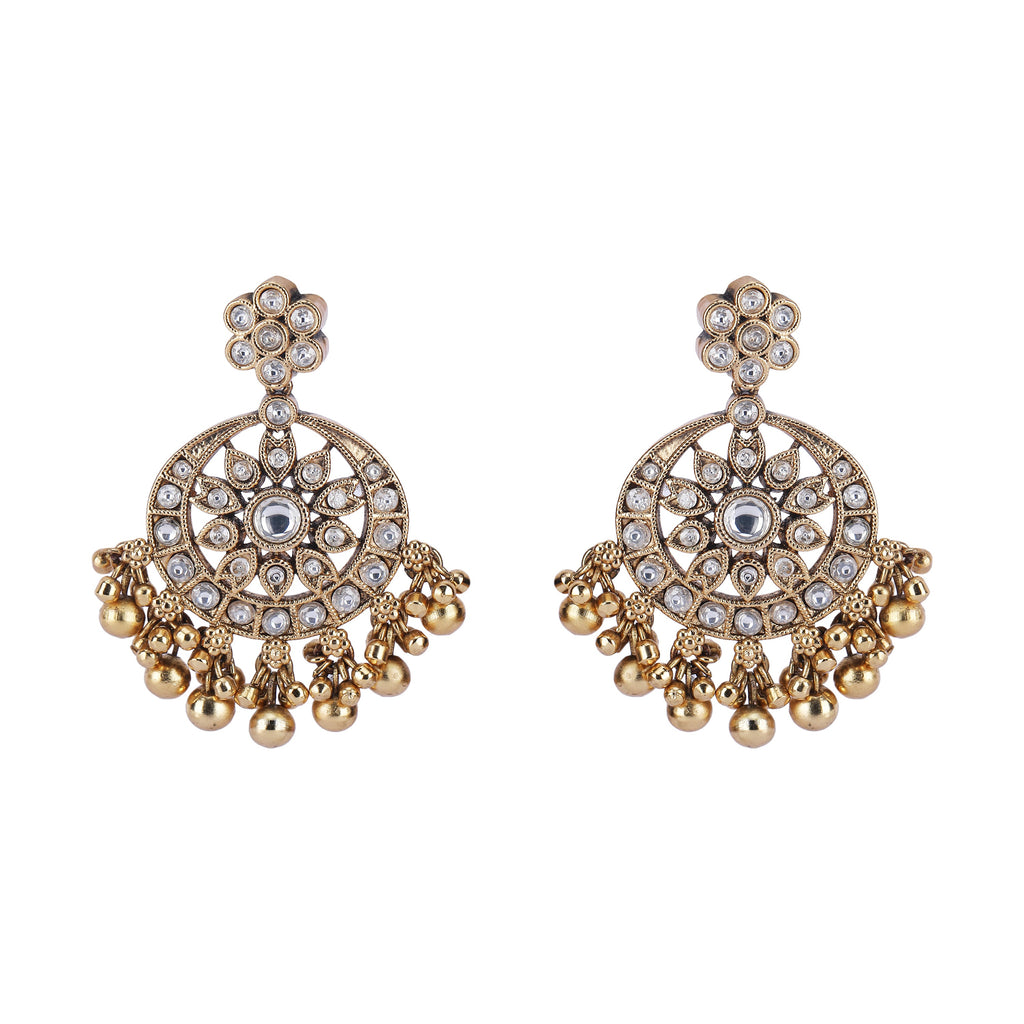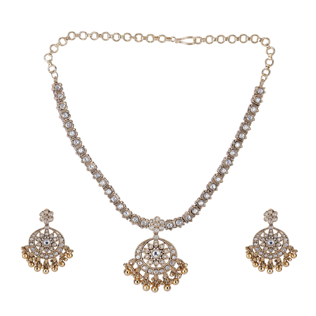 Details Size : Necklace L-20" X W-1.5" Earring L-0.8" X W-0.6" Stone Setting : String(s) : chain Drop(s) : Finish : Gold Plated Finding : Hook Link& Push Back Art Karat Jewelry is plated with 22k gold, studded with precious,...