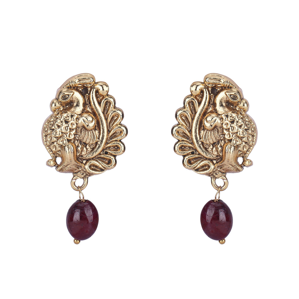 Details Size : Necklace L-21" X W-1.6" Earring L-1.3" X W-0.8" Stone Setting : Ruby String(s) : Drop(s) : Finish : Gold Plated Finding : Hook Link& Push Back Art Karat Jewelry is plated with 22k gold, studded with precious,...