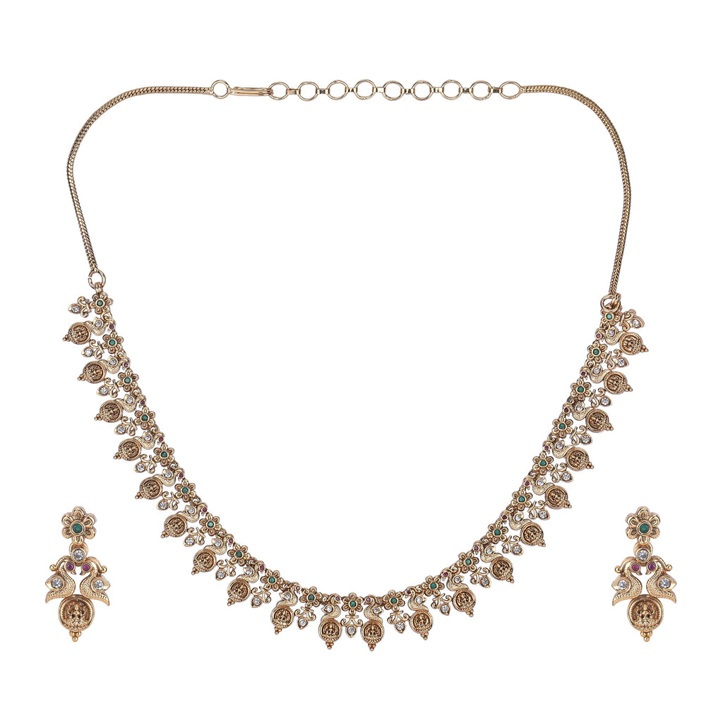 Details Size : Necklace L-20" X W-1.5" Earring L-0.8" X W-0.6" Stone Setting : String(s) : chain Drop(s) : Finish : Gold Plated Finding : Hook Link& Push Back Art Karat Jewelry is plated with 22k gold, studded with precious,...