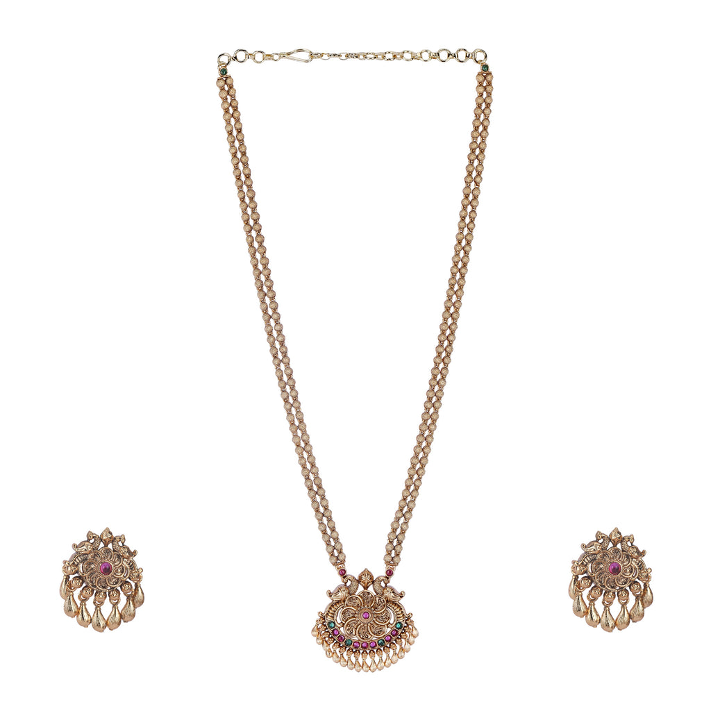 Details Size : Necklace L-16" X W-0.3" Earring L-1.1" X W-0.5" Stone Setting : String(s) : Drop(s) : Finish : Gold Plated Finding : Hook Link& Push Back Art Karat Jewelry is plated with 22k gold, studded with precious, semi-precious...