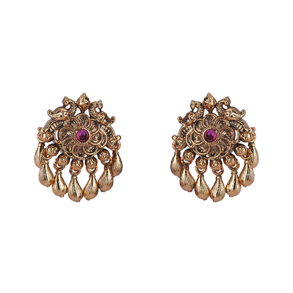Details Size : Necklace L-20" X W-1.3" Earring L-1" X W-0.7" Stone Setting : Ruby String(s) : Drop(s) : Finish : Gold Plated Finding : Hook Link& Push Back Art Karat Jewelry is plated with 22k gold, studded with precious,...