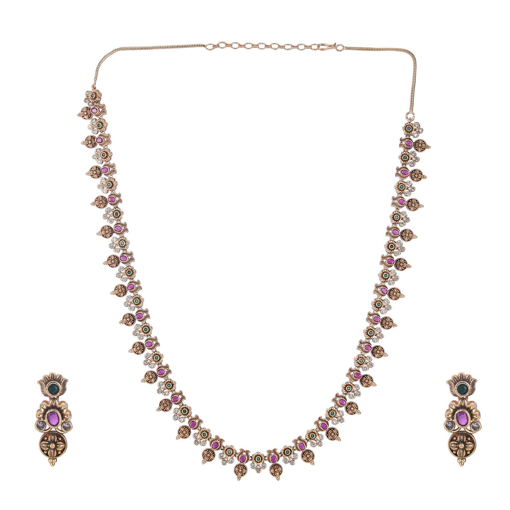 Details Size : Necklace L-16" X W-0.3" Earring L-1.1" X W-0.5" Stone Setting : String(s) : Drop(s) : Finish : Gold Plated...