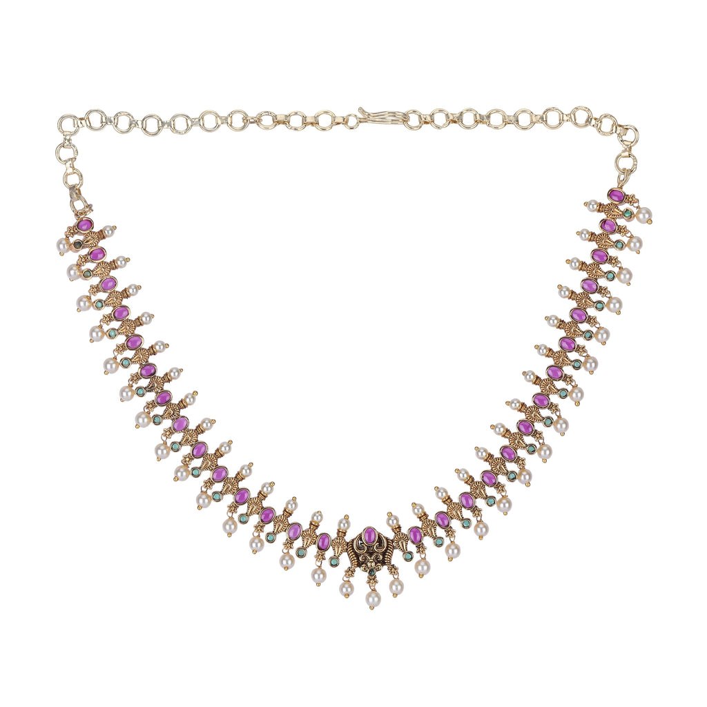 Details Size : Necklace L-21" X W-2" Earring L-1.2" X W-0.6" Stone Setting : Ruby Green Onyx String(s) : Drop(s) : Finish : Gold Plated Finding : Art Karat Jewelry is plated with 22k gold, studded with precious, semi-precious and...