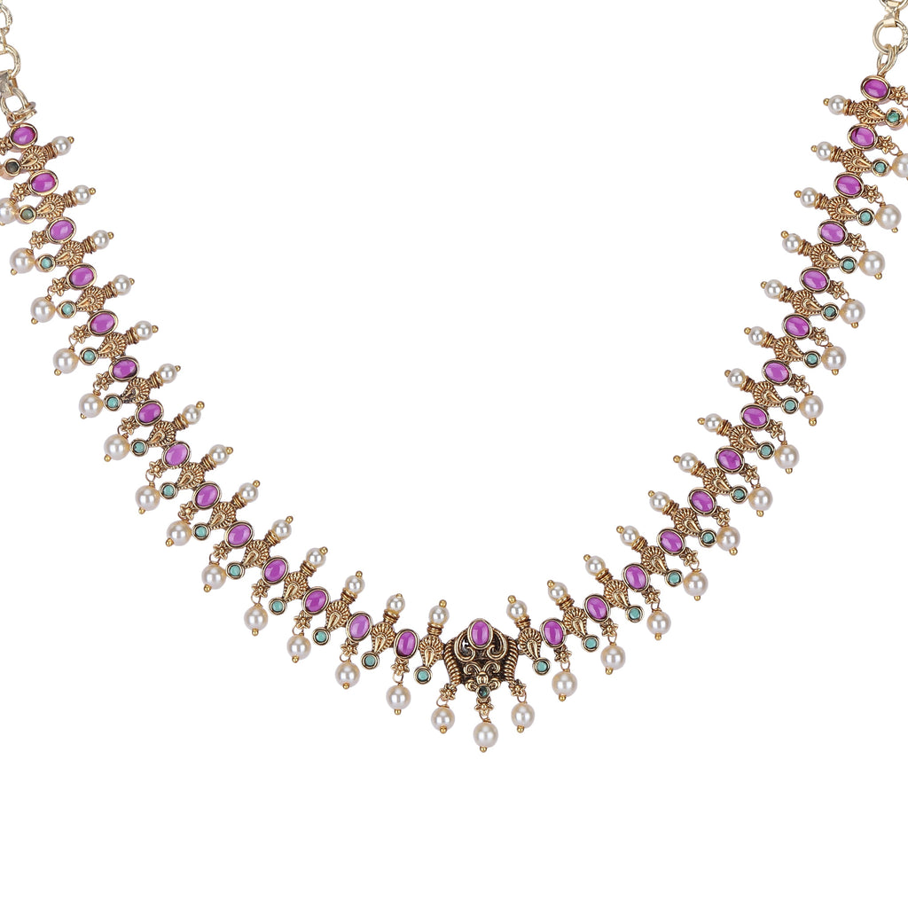 Details Size : Necklace L-16" X W-0.3" Earring L-1.1" X W-0.5" Stone Setting : String(s) : Drop(s) : Finish : Gold Plated...