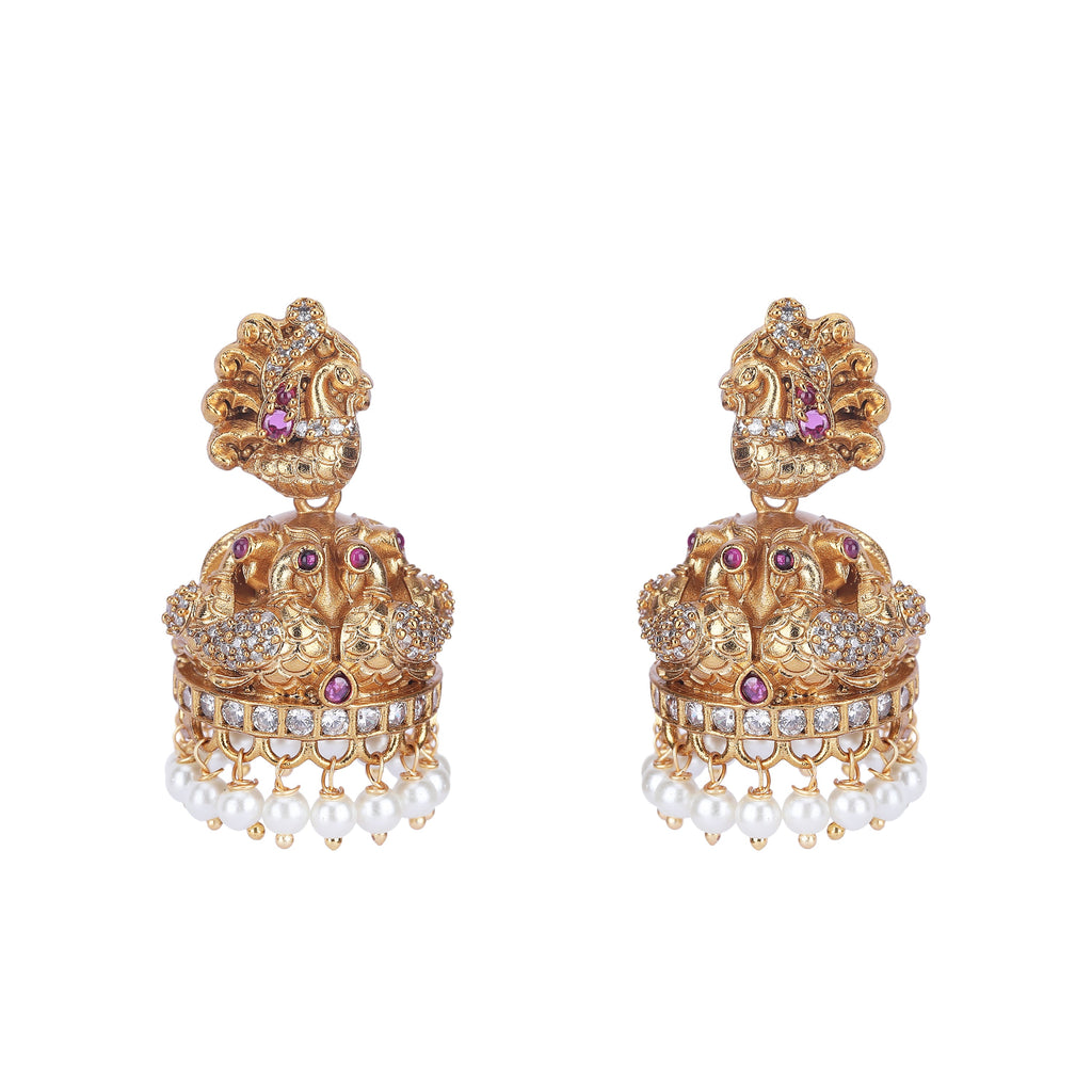 Details Size : Necklace L-21" X W-1.6" Earring L-1.3" X W-0.8" Stone Setting : Ruby String(s) : Drop(s) : Finish : Gold Plated Finding : Hook Link& Push Back Art Karat Jewelry is plated with 22k gold, studded with precious,...