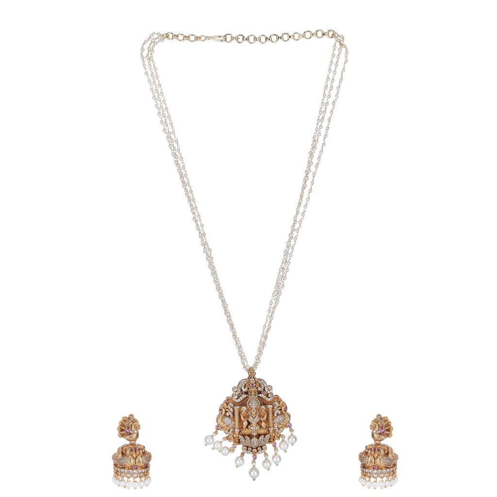 Details Size : Necklace L-20" X W-1.5" Earring L-0.8" X W-0.6" Stone Setting : String(s) : chain Drop(s) : Finish : Gold...